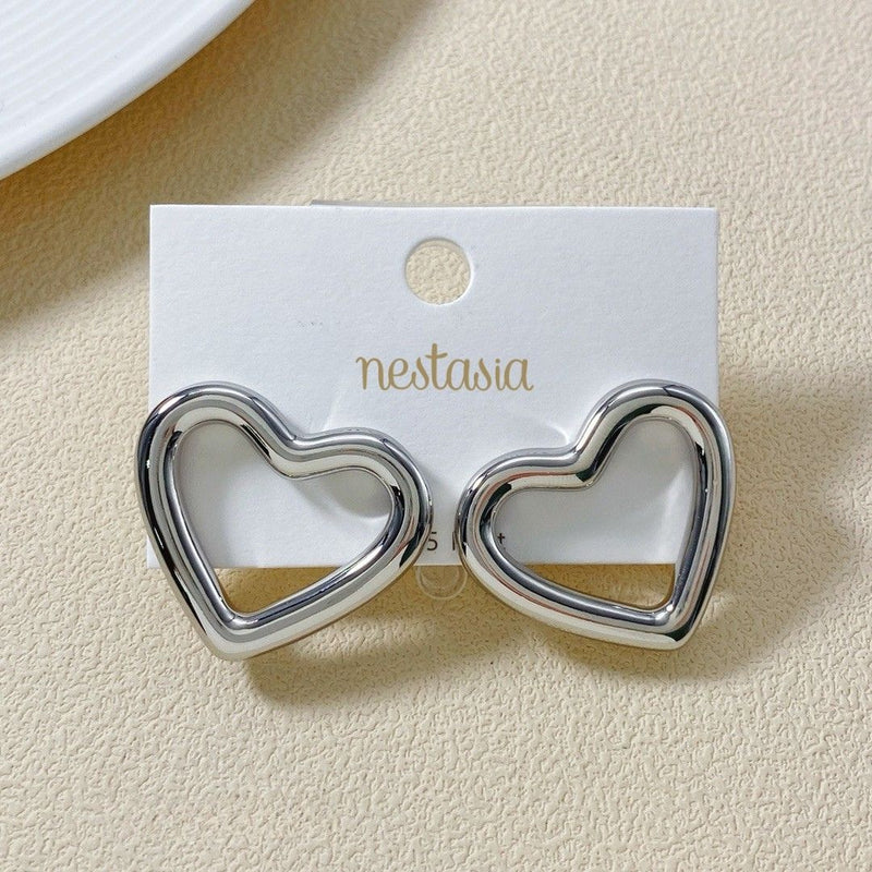 Sleek, modern, and effortlessly chic - this pair of silver-toned metal stud earrings brings a fresh take on the classic heart shape. With their minimalist design, these earrings are a perfect blend of elegance and contemporary style, making them ideal for both everyday wear and special occasions. The smooth, heart-shaped studs are crafted from durable metal with a polished finish, adding a subtle yet striking touch to your look. Inspired by timeless love and modern simplicity, they are a versatile accessory that complements any outfit with ease.