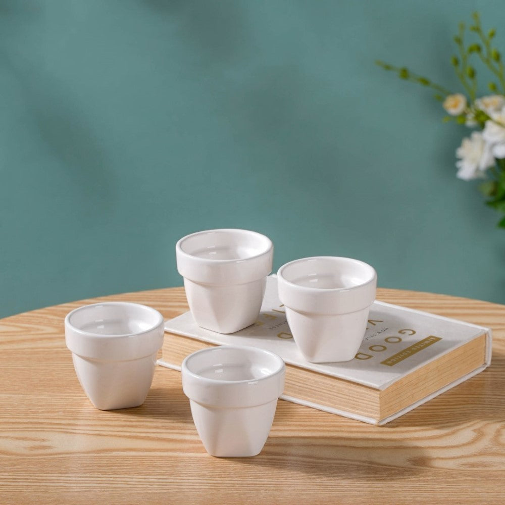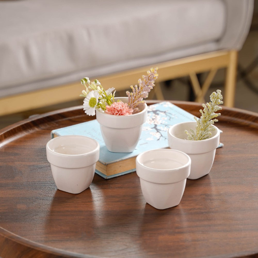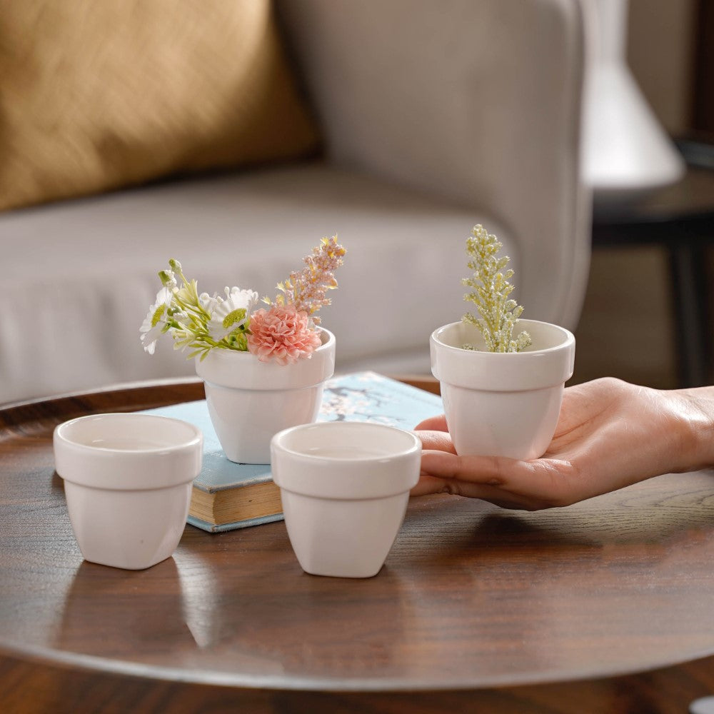 The mini pot decor object has been designed in a high-quality ceramic material that makes a cute decor object. The pot showpiece that comes in a set of 4 has a smooth finish with a rim just like the regular pots and planters. The decor object is lightweight, non-porous, and durable. It would add a unique and fresh look to your decoration. The mini pot decor showpiece can be used to beautify your garden, balcony, or office.