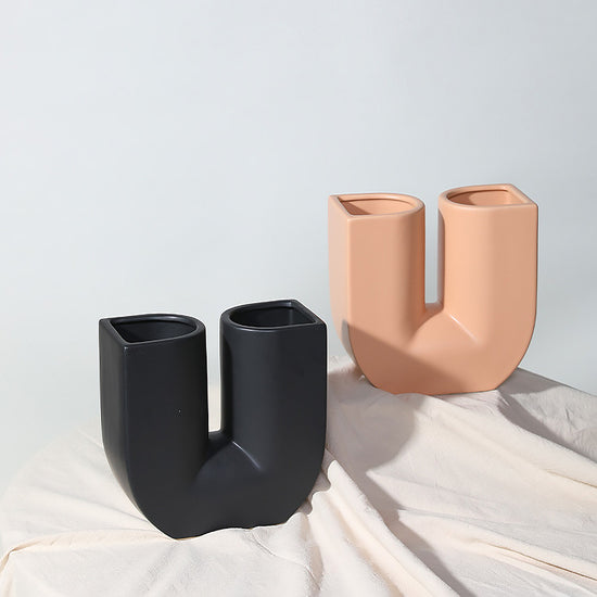 Certainly, this vase is not limited to just holding flowers. With its premium quality ceramic construction, durable and long-lasting build, and expertly handcrafted design, it can also serve as an excellent decorative piece for your home. The smooth matte finish, U-shaped design, and Nordic style make it a versatile addition to your decor. You can use it to display decorative branches, dried flowers, or other ornaments, making it suitable for various decor items. The vase's anti-skid foam pads on the base provide stability, ensuring it can securely hold your chosen decorative elements.