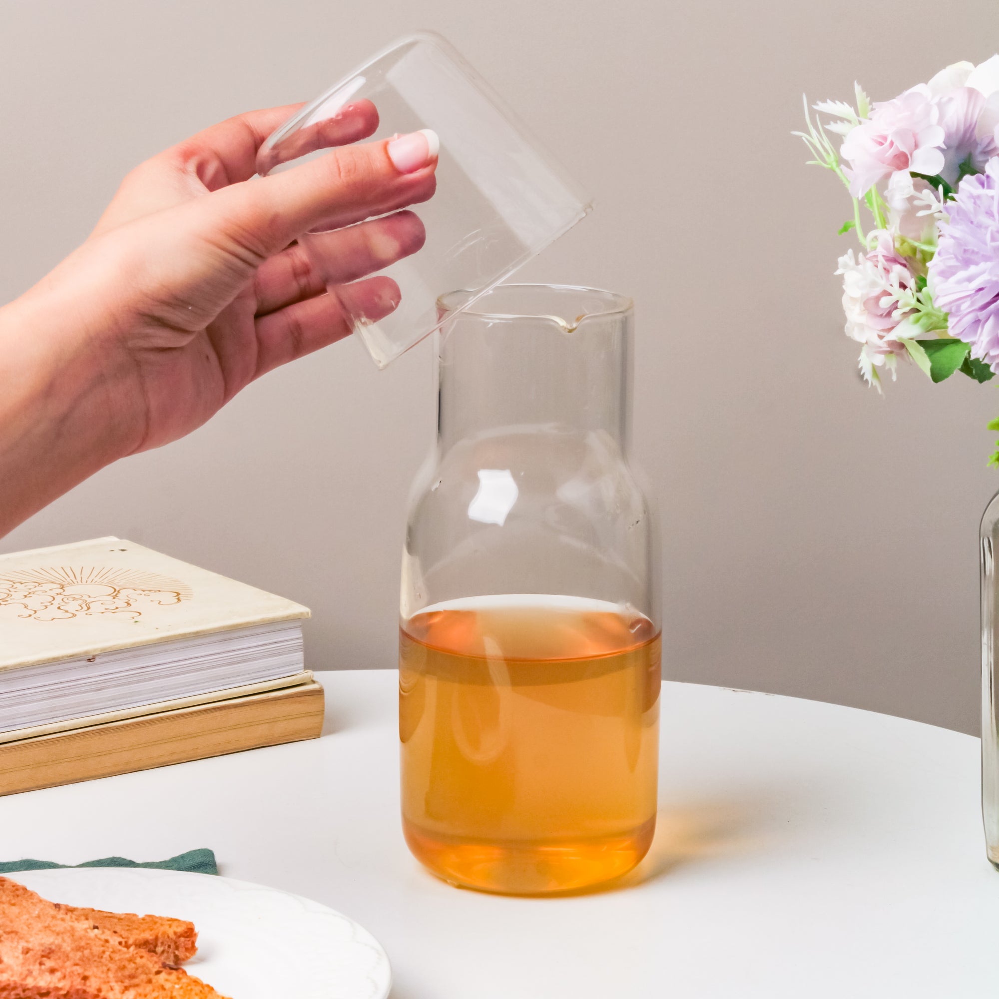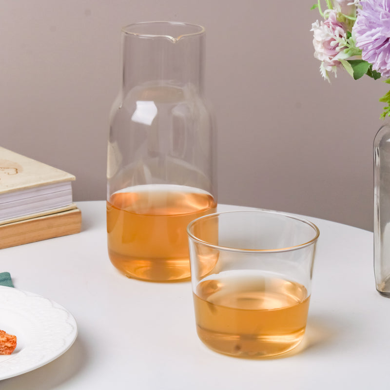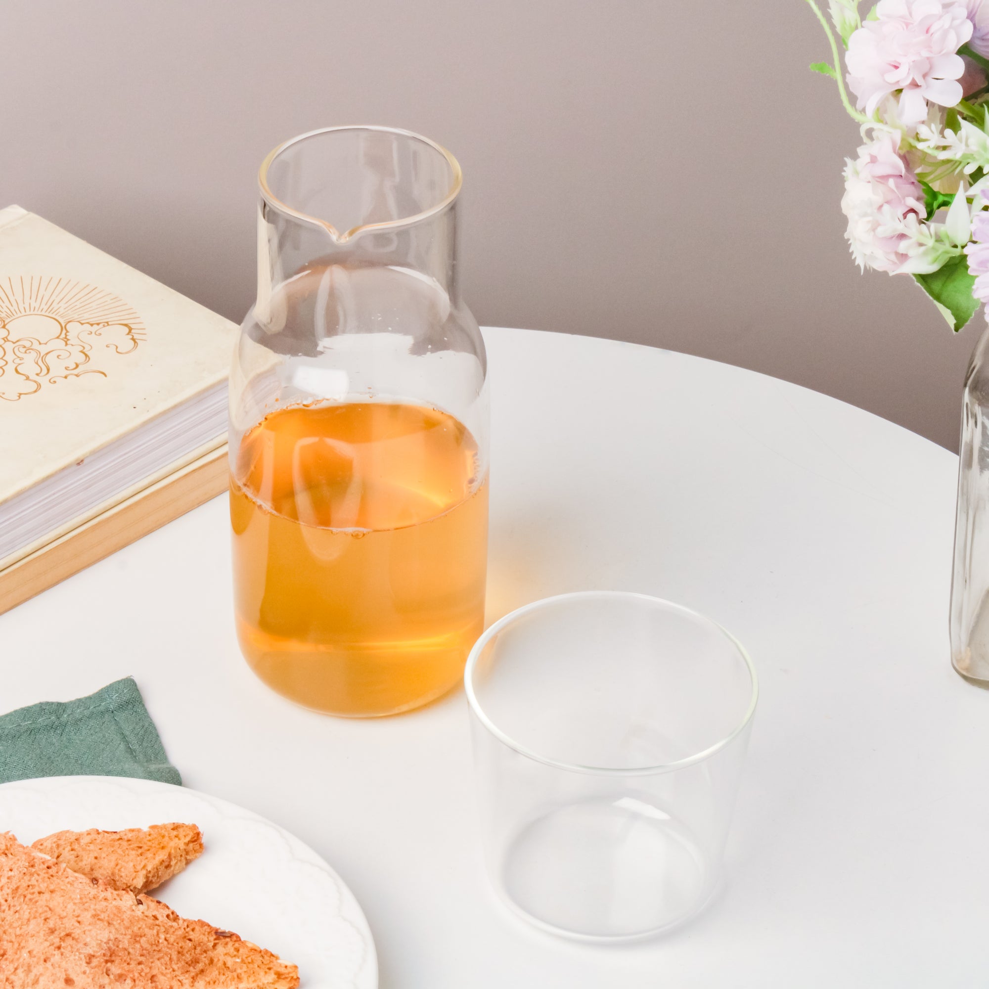 With the transparent glass tea kettle and cup, one may enjoy the golden hues of the tea. The tea kettle and cup are great for everyday sipping or infusing flower-based teas. The teapot set is entirely handcrafted from heat-resistant glass and features a non-dripping, sturdy construct for a secure grip, making the pot easy to pass and hold. Serve green, white, black tea, or simply refreshing flavored water from the kettle. The 500ml capacity pot and cup adorn a smooth and unique shape and an easy-to-fit lid to keep the beverage warm or cold.