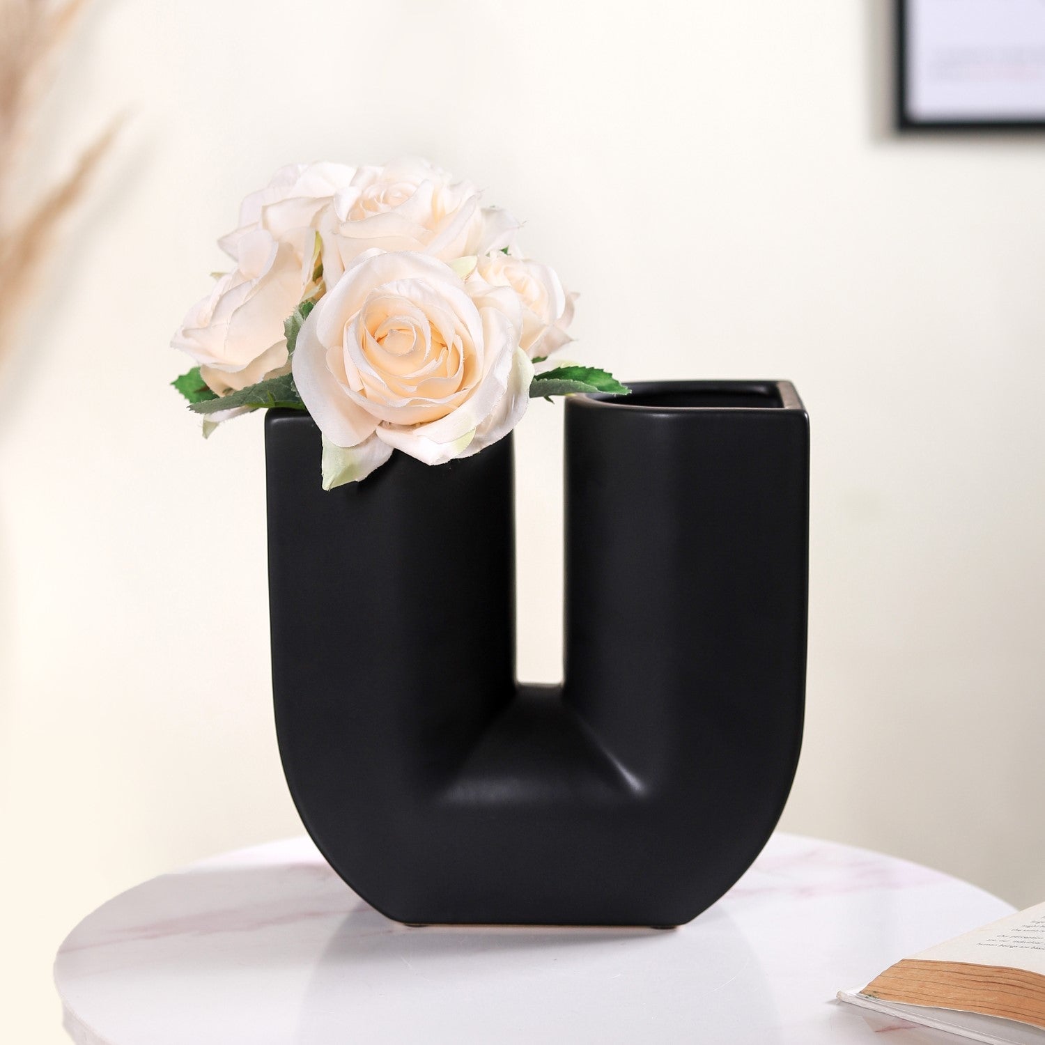 The vase features a smooth matte finish. This finish not only adds a touch of elegance to the vase but also contributes to its overall durability and easy maintenance. It complements the U-shaped design and Nordic style, making it a versatile and aesthetically pleasing addition to your living room decor. The matte finish is easy to clean and maintain, ensuring that the vase retains its beauty over time. Whether you use it for flower bouquets or as a standalone decor piece, the matte finish enhances its appeal, making it an ideal choice for gifting or enhancing your home decor.