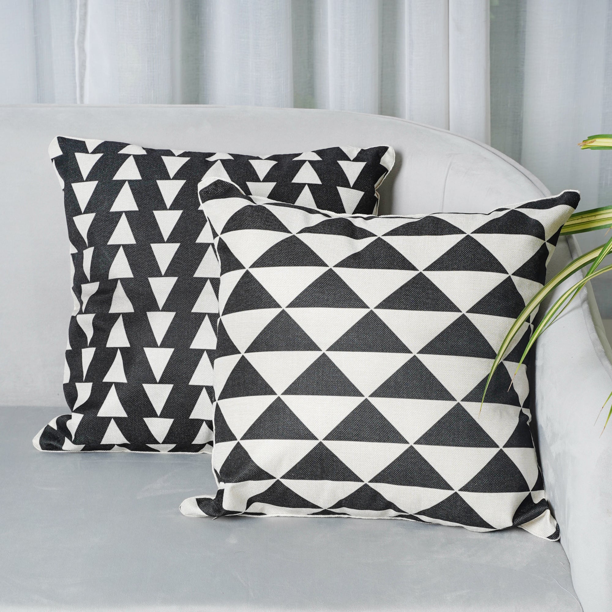 Black and white patterns never go out of style. Up for grabs in 6 remarkable designs, the cushion cover is made of sturdy material and is consistent with a soft texture. The monochromatic quotient ups the glamour factor and is sure to liven up the decor of any setting. The sofa cushion covers come in a set of 2 of the same design and add layer and enhance the space, complementing any decor setting.