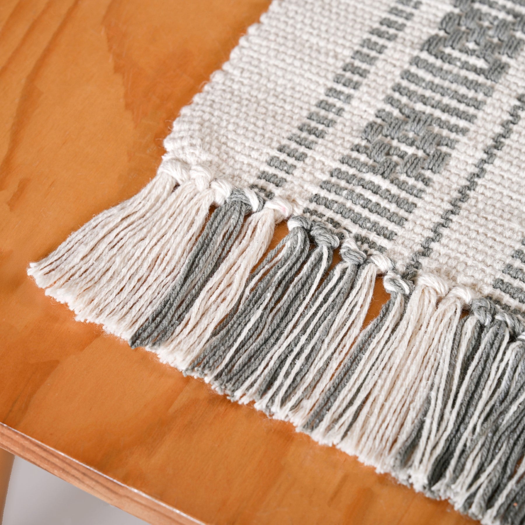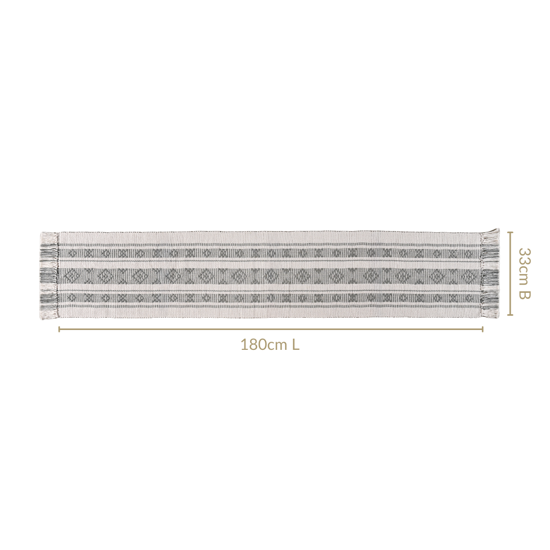 Crafted for practical charm, this cotton table runner blends soft woven texture with geometric detailing to create an inviting dining space.