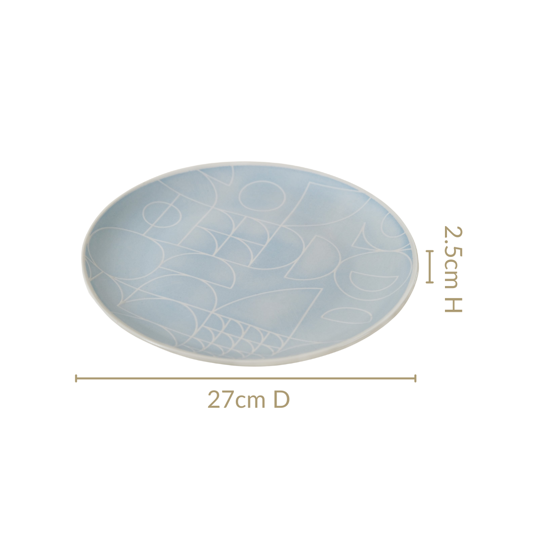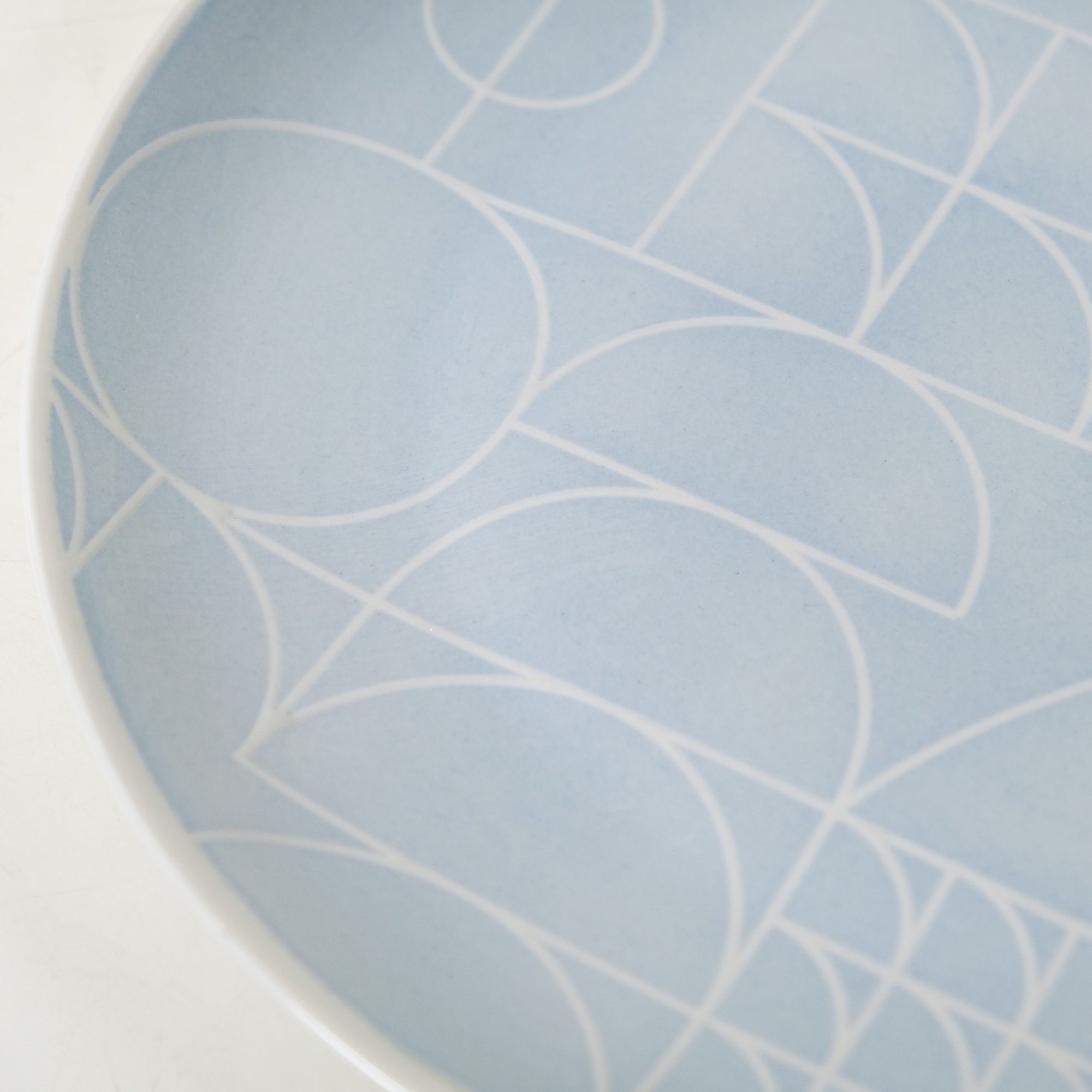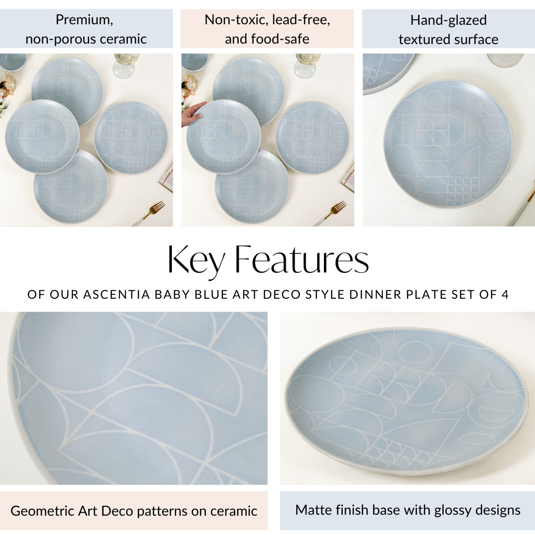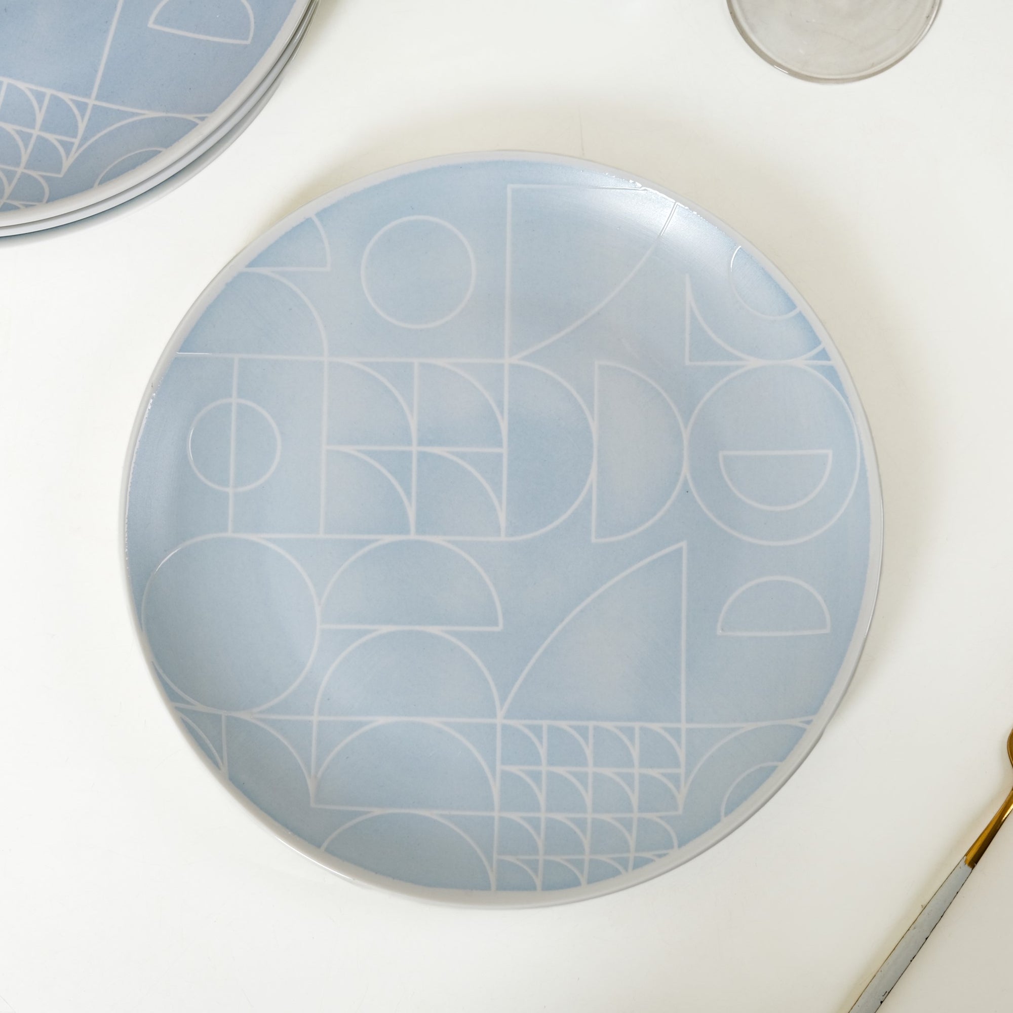 Design: Named after the word "ascent," symbolising elevation, the Monvia ceramic plates feature geometric Art Deco patterns that elevate the aesthetics of any table setting. Their sophisticated design is complemented by a soft baby blue matte finish base and glossy accents, creating a perfect balance of modern style and classic elegance.