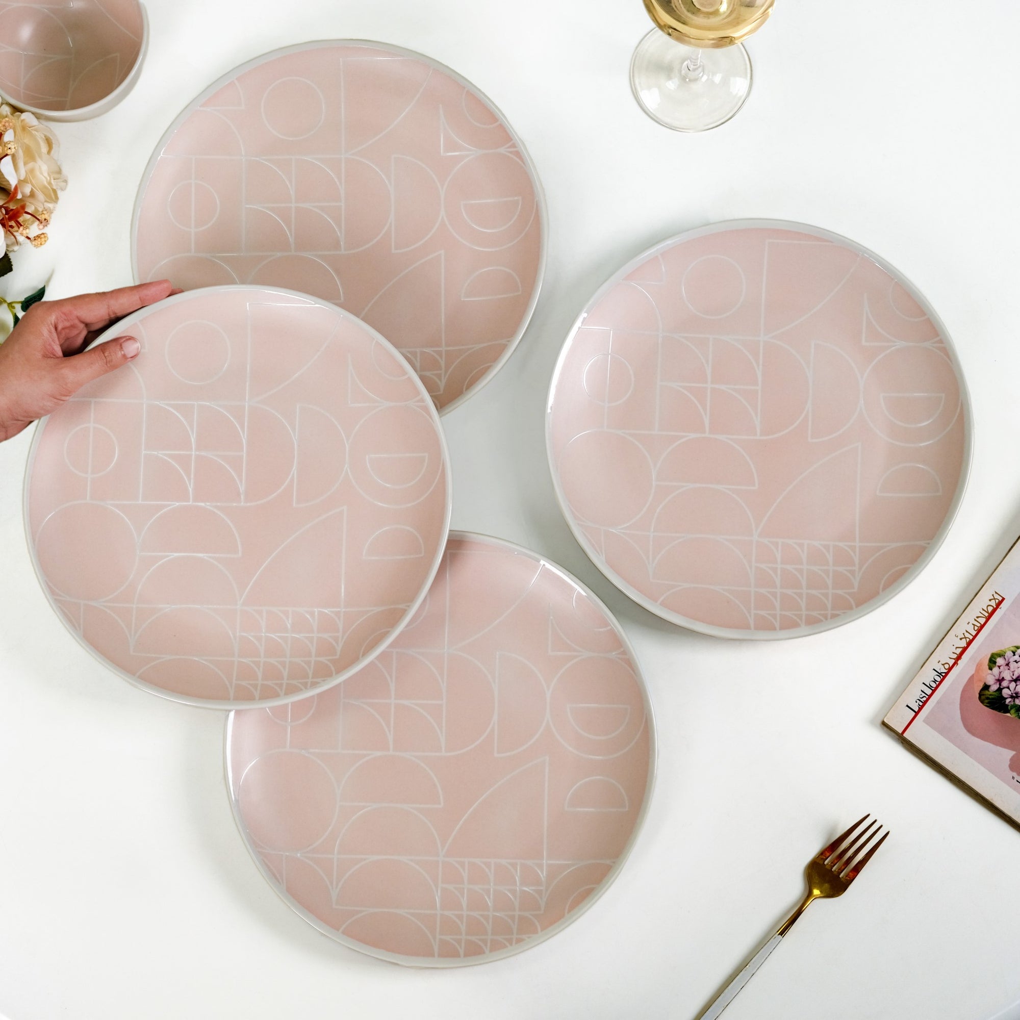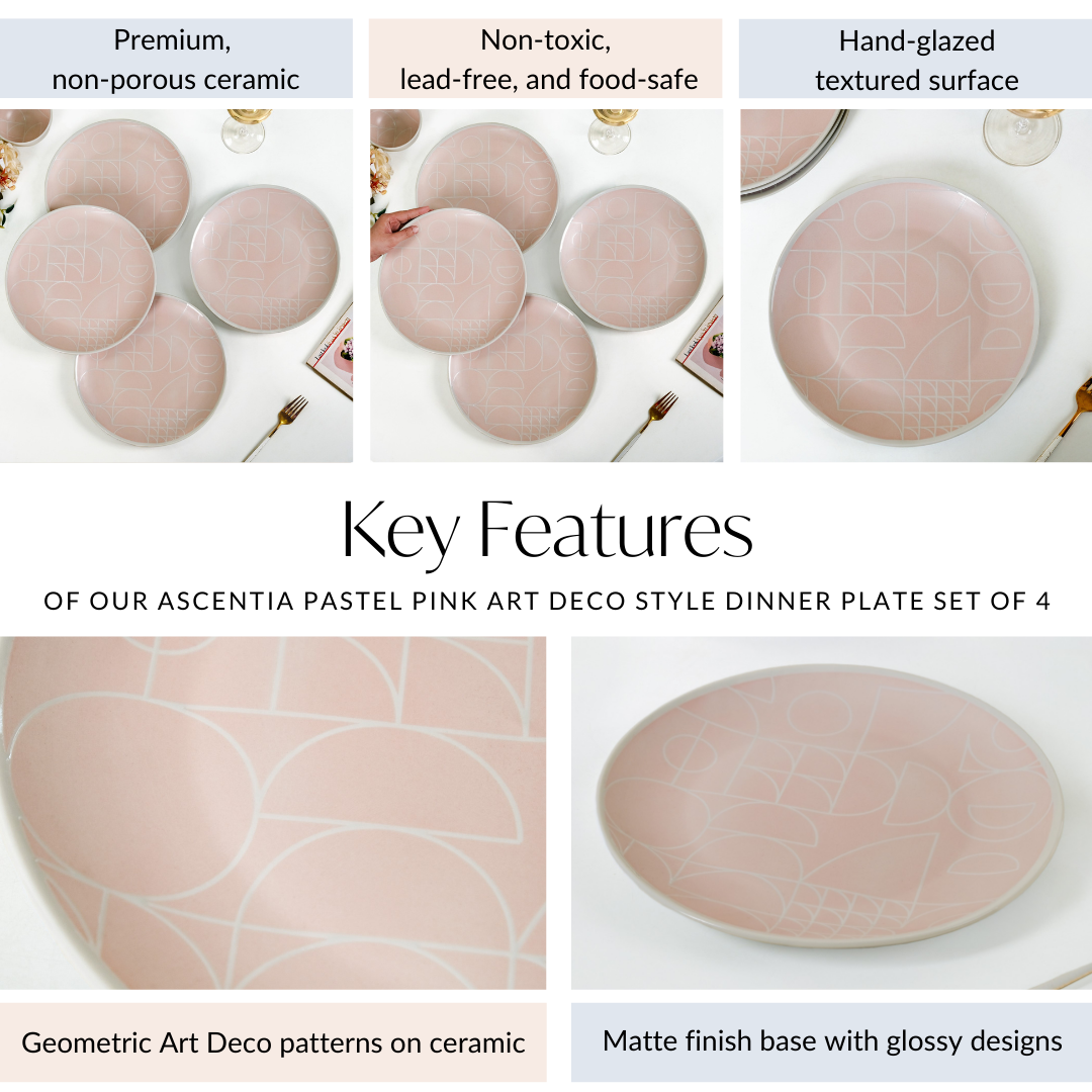 Monvia Pastel Pink Art Deco Style Dinner Plate Set Of 4 10 Inch