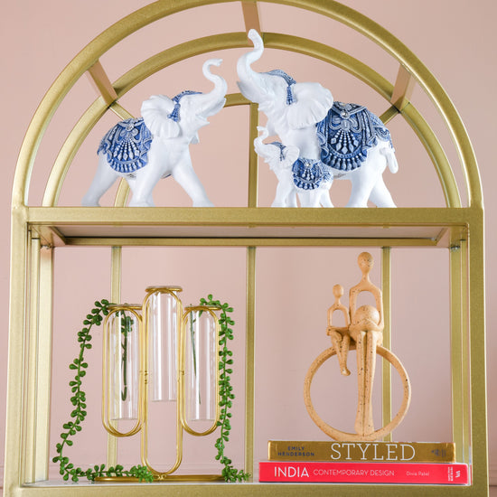 While the showpiece is designed with high-quality materials and is quite sturdy and durable, it is best if you use it for indoor use. This is because this showpiece showcases intricate blue patterns adorned with exquisite crystals on the body of each elephant. However, you can display this showpiece in covered outdoor areas to prevent exposure to harsh weather conditions.