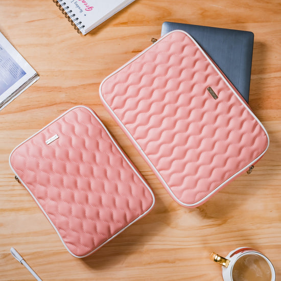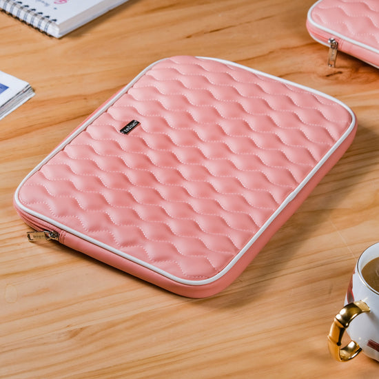 Carry your laptop in style with our very chic laptop sleeve in pink. Made from sustainable vegan leather material, this sleeve will keep your laptop warm and dry. The soft lining keeps it scratch-free. Spacious and sturdy, the sleeve fits a laptop with a 14-inch screen size. The two strong zipper enclosures of the laptop sleeve make it easy to carry around without the fear of dropping your device. This modern and aesthetically pleasing laptop sleeve is ideal for everyday use for the one who loves to be on the go.