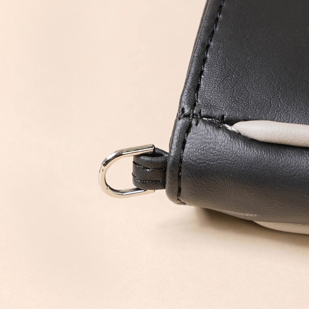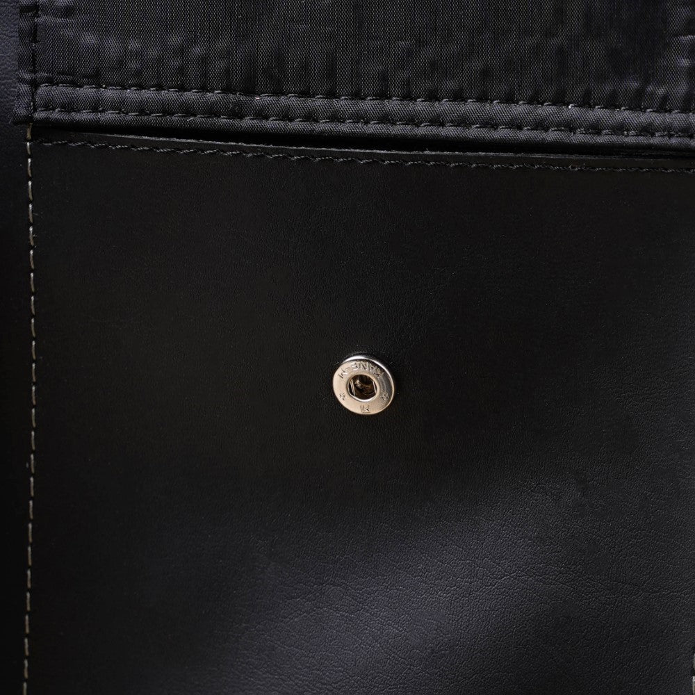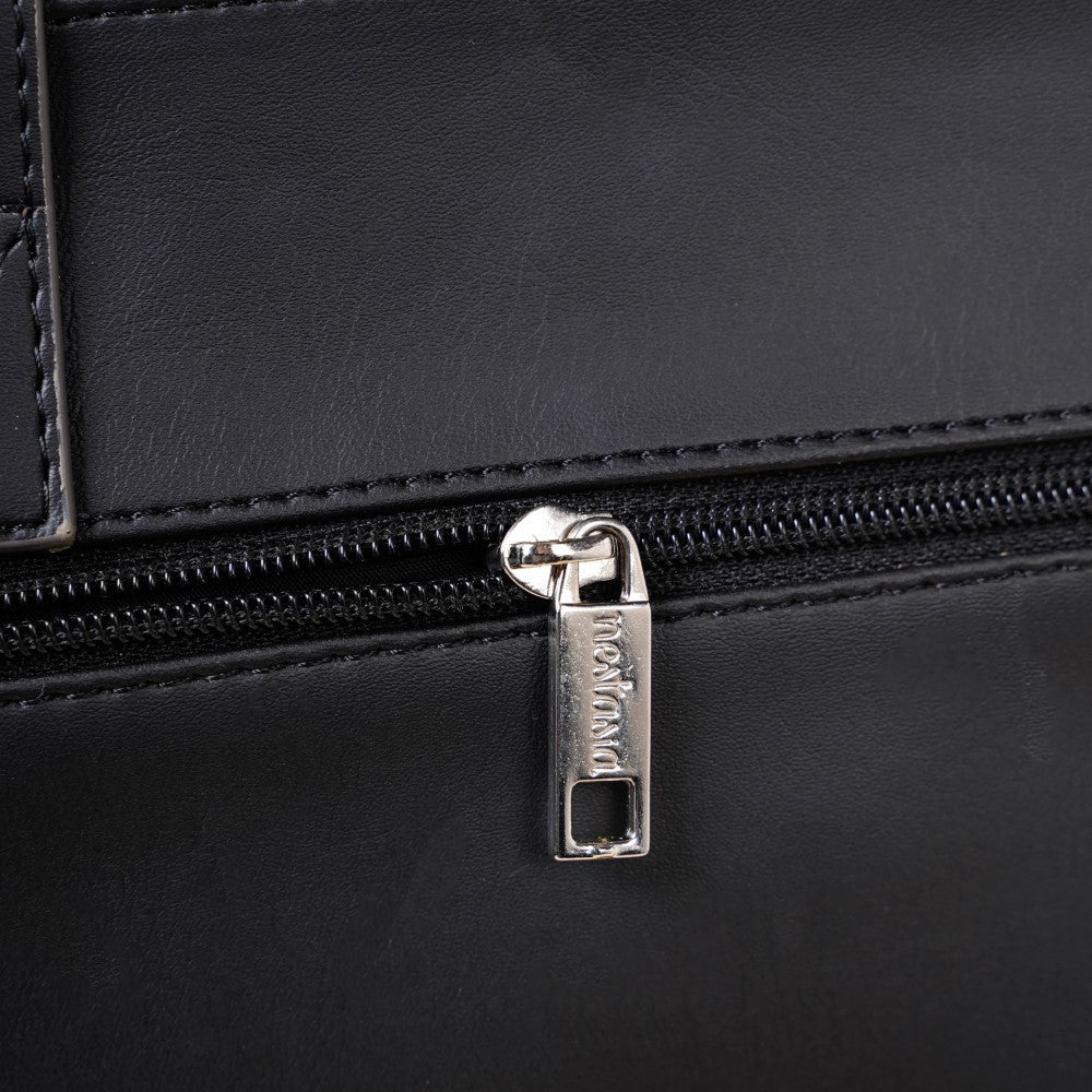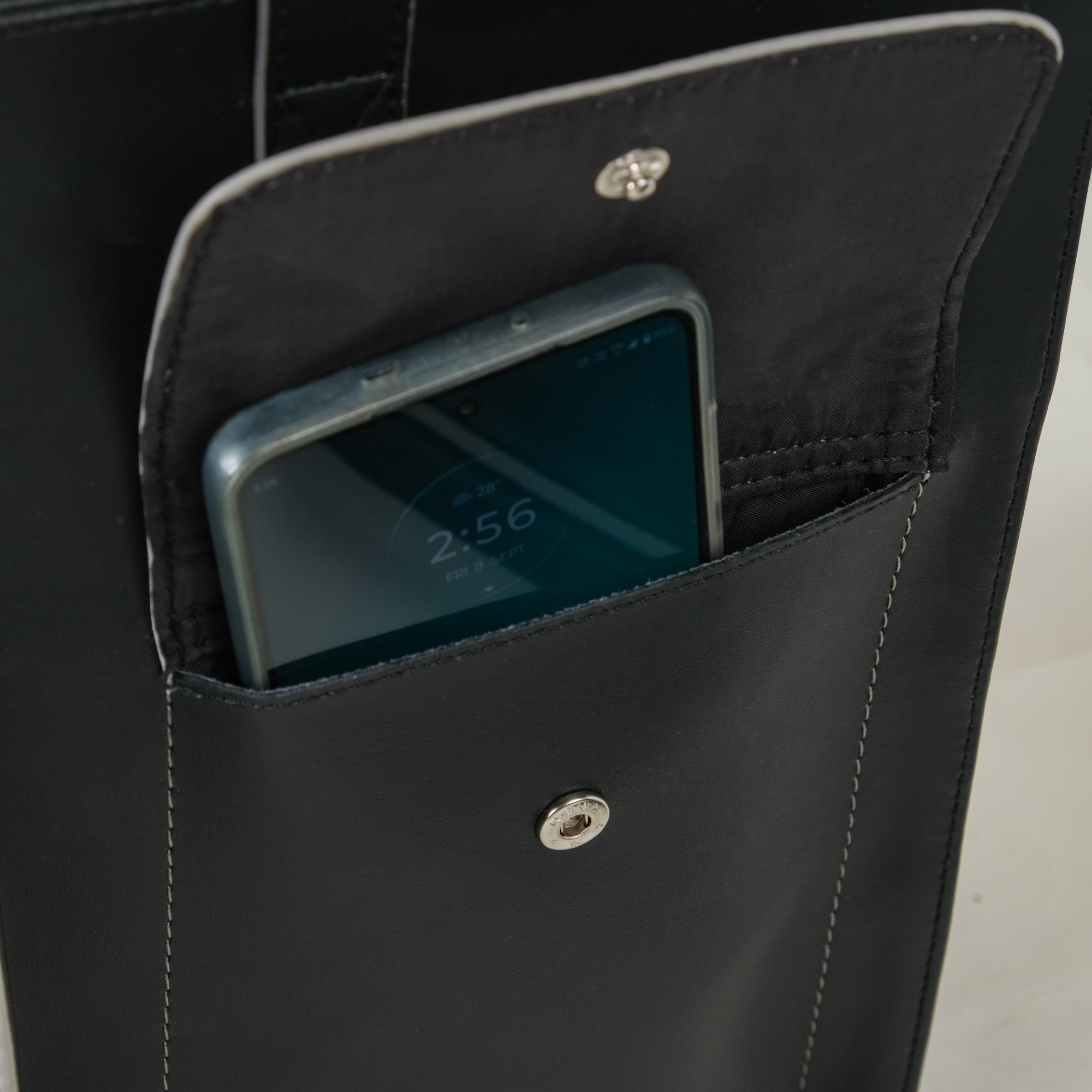 The black and grey tote bag is a stylish and sustainable choice for the modern individual. Crafted from high-quality vegan leather, this bag combines fashion with eco-consciousness. With its water-resistant and durable design, it's perfect for all your daily adventures. The tote features a spacious main compartment tailored to fit 15-inch laptops, alongside two exterior pockets secured with magnetic buttons. Inside, discover an inner zippered pocket for smaller essentials. Additionally, the bag includes a removable external sling pouch with a detachable chain strap and a convenient keychain holder on the sling flap. Its smooth zipper enclosures make it travel-friendly and an excellent gift option for your loved ones. Stay organized, stylish, and eco-friendly with this versatile tote.