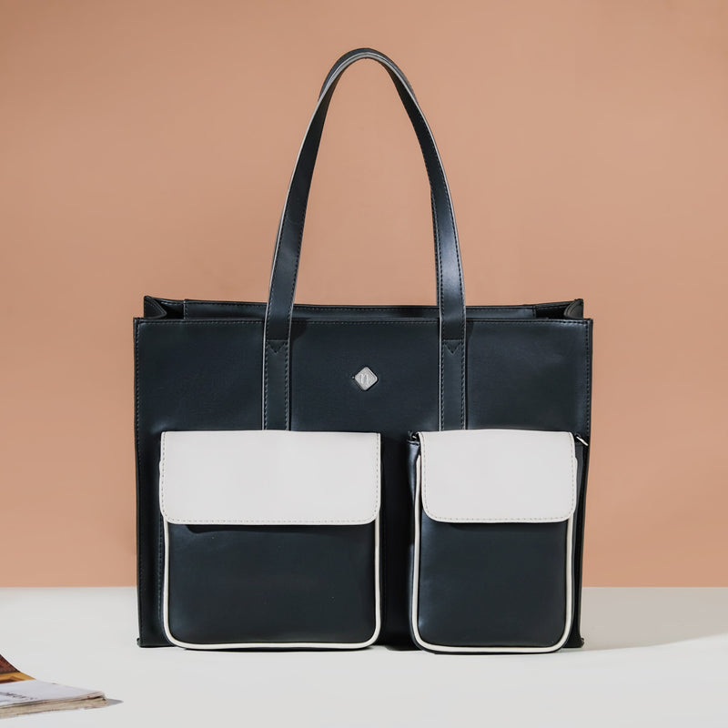 Nestip: Elevate any outfit effortlessly by pairing the black and grey tote bag with neutral colours for a chic fashion statement.
