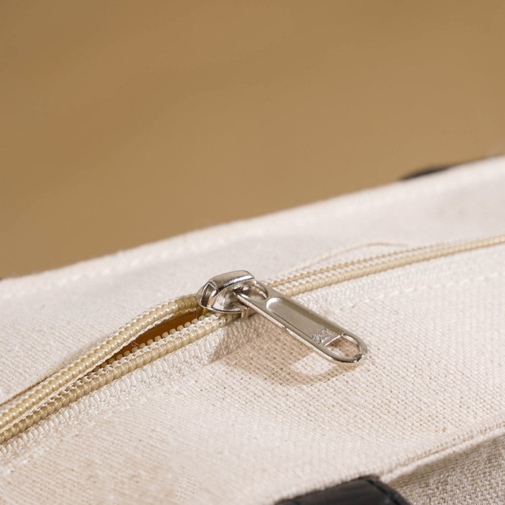 Unleash your inner fashionista with our sleek tote bag set. Crafted from premium quality canvas material, our large and small black and beige canvas tote bag set is a perfect blend of functionality and style. The spacious compartment of the tote bags is ideal for carrying your daily essentials, while the smooth zipper system ensures their security. Whether you are heading to work or going on a vacation, our multipurpose tote bags will be your reliable travel companion.