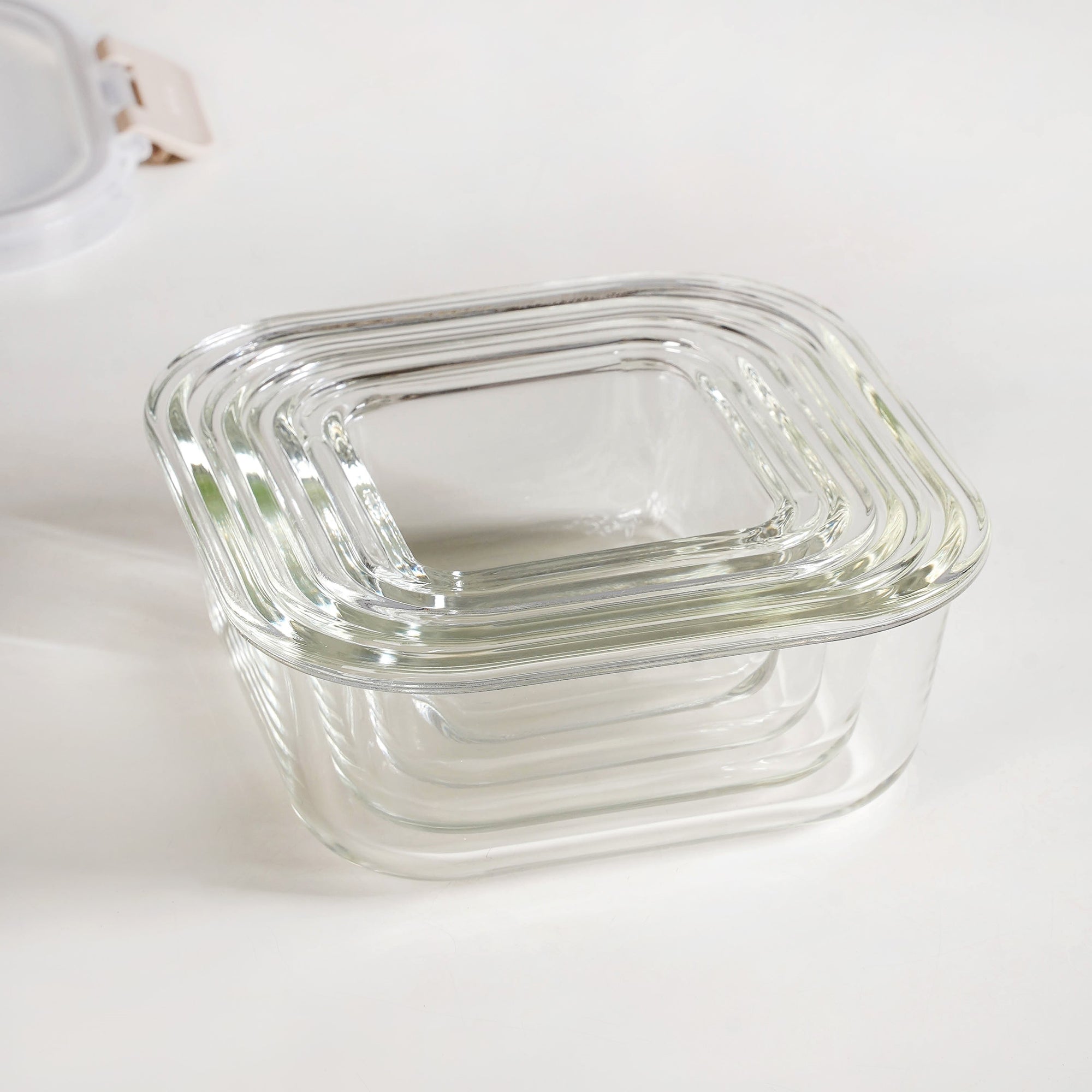 Design: Crafted from high borosilicate glass, this set features transparent, square containers with smooth finishes for a clean, modern kitchen aesthetic. Each container has a neutral beige PP lid with a silicone gasket for airtight sealing. Subtle grooved bases prevent slipping, and the containers come in varying capacities for versatile storage. Stackable design maximizes pantry and fridge space, combining durability, crystal-clear visibility, and style in every piece.