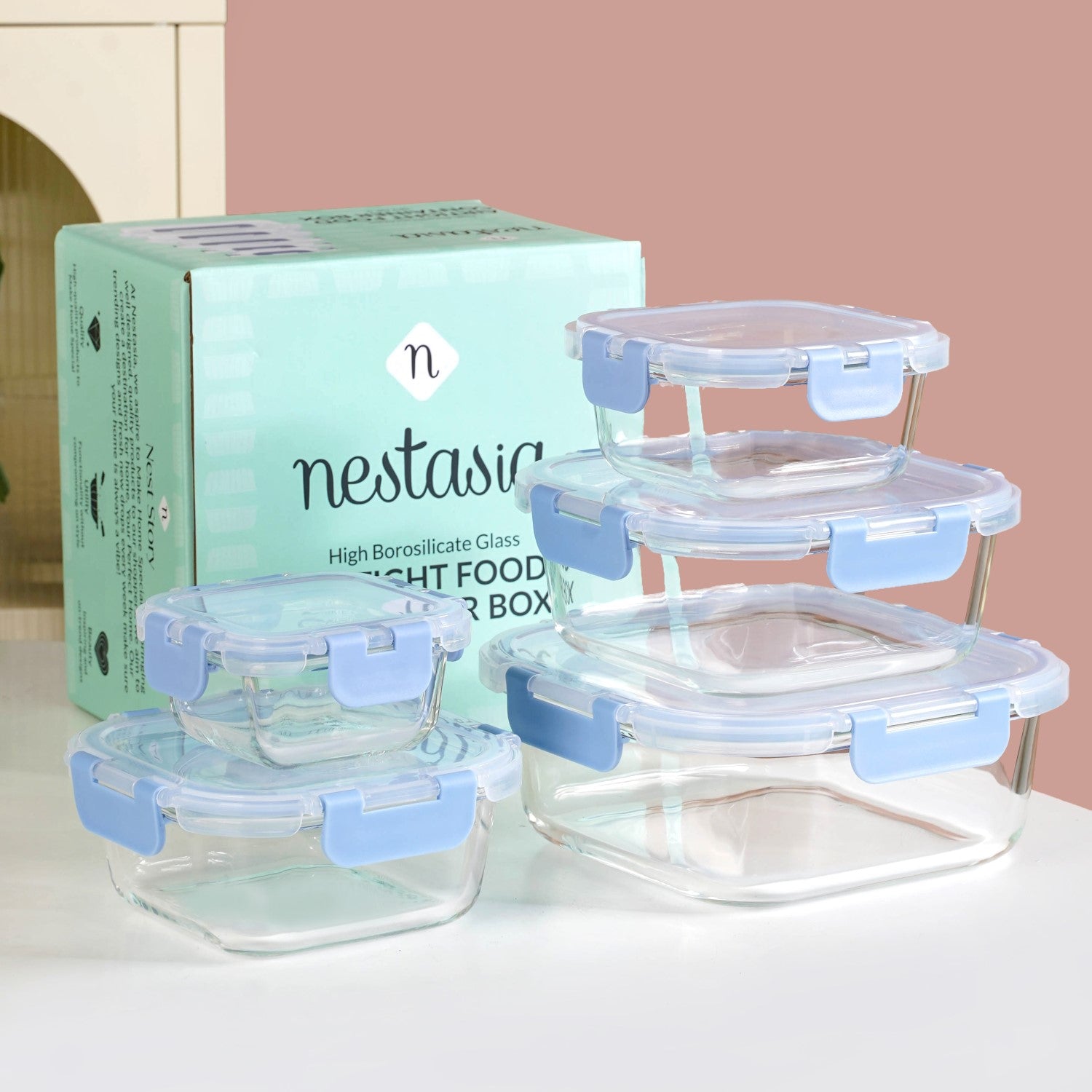 Nestro Airtight Food Storage Square Container Set Of 5 Blue