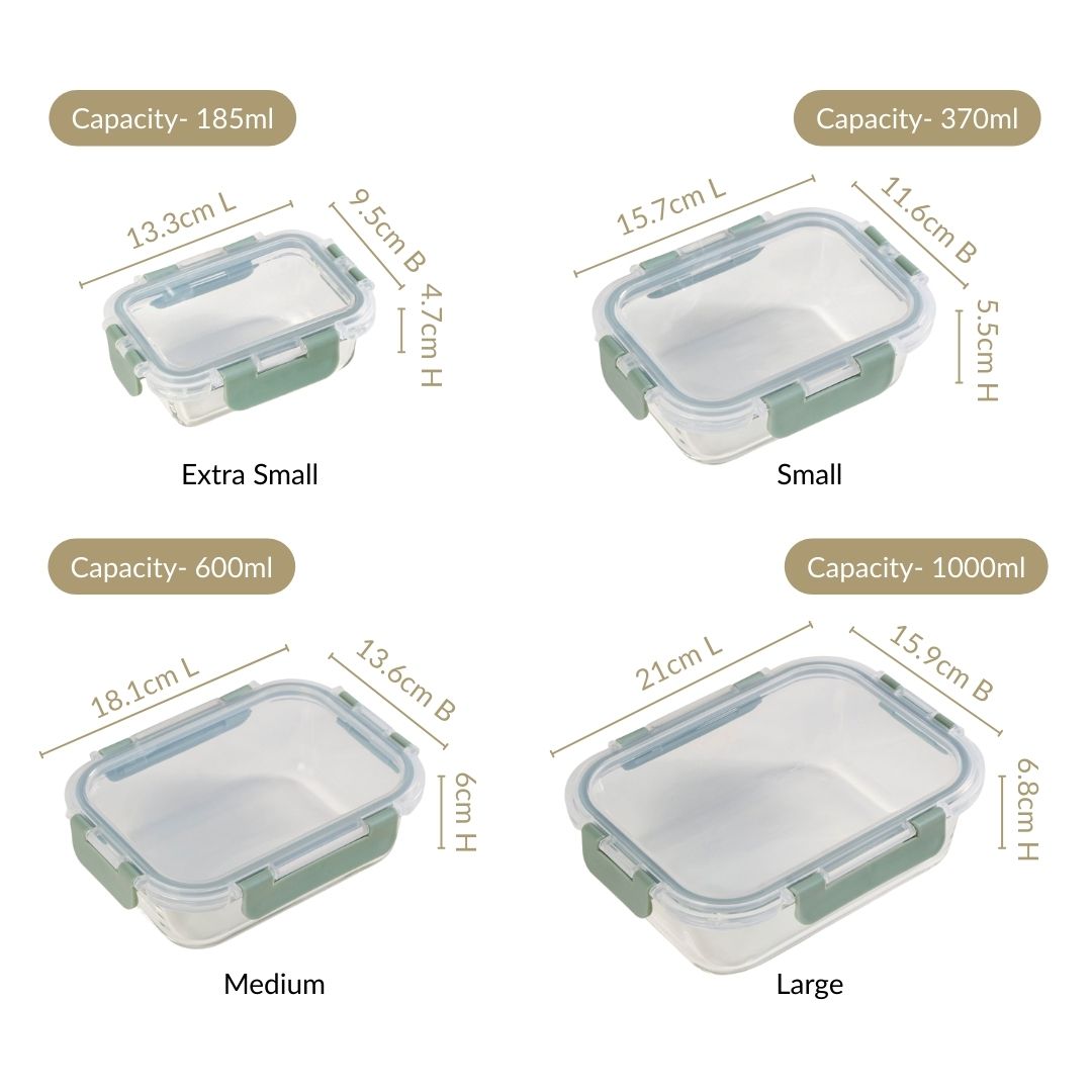 Discover the perfect size for every meal with our versatile borosilicate glass lunchbox set. A smart microwave-safe lunch box solution for all your daily food-carrying needs!