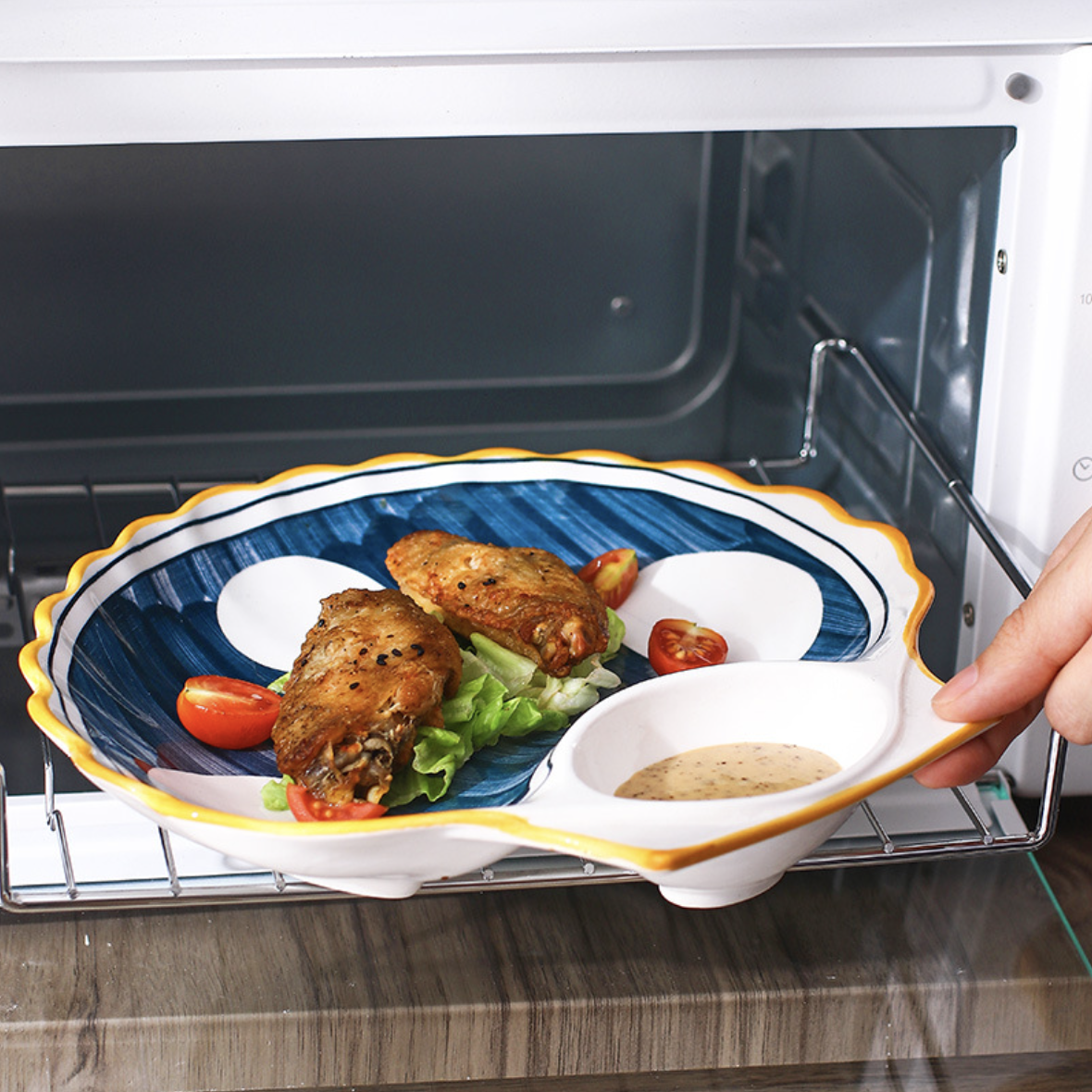 For all the snacksters, it’s important to sit with snacks and dips altogether. But collecting snack plates and dip bowls separately might create a fuss. Our collection of Nitori Shell Section snack plates can be the perfect pick for all snacksters. The ceramic snack plates come with an oval dip section, alongside a shell-shaped large section to serve all the favourite snacks like chips, nachos, tortillas, tacos, etc. Now enjoy your favourite snacks with some delicious dips without any hassle.