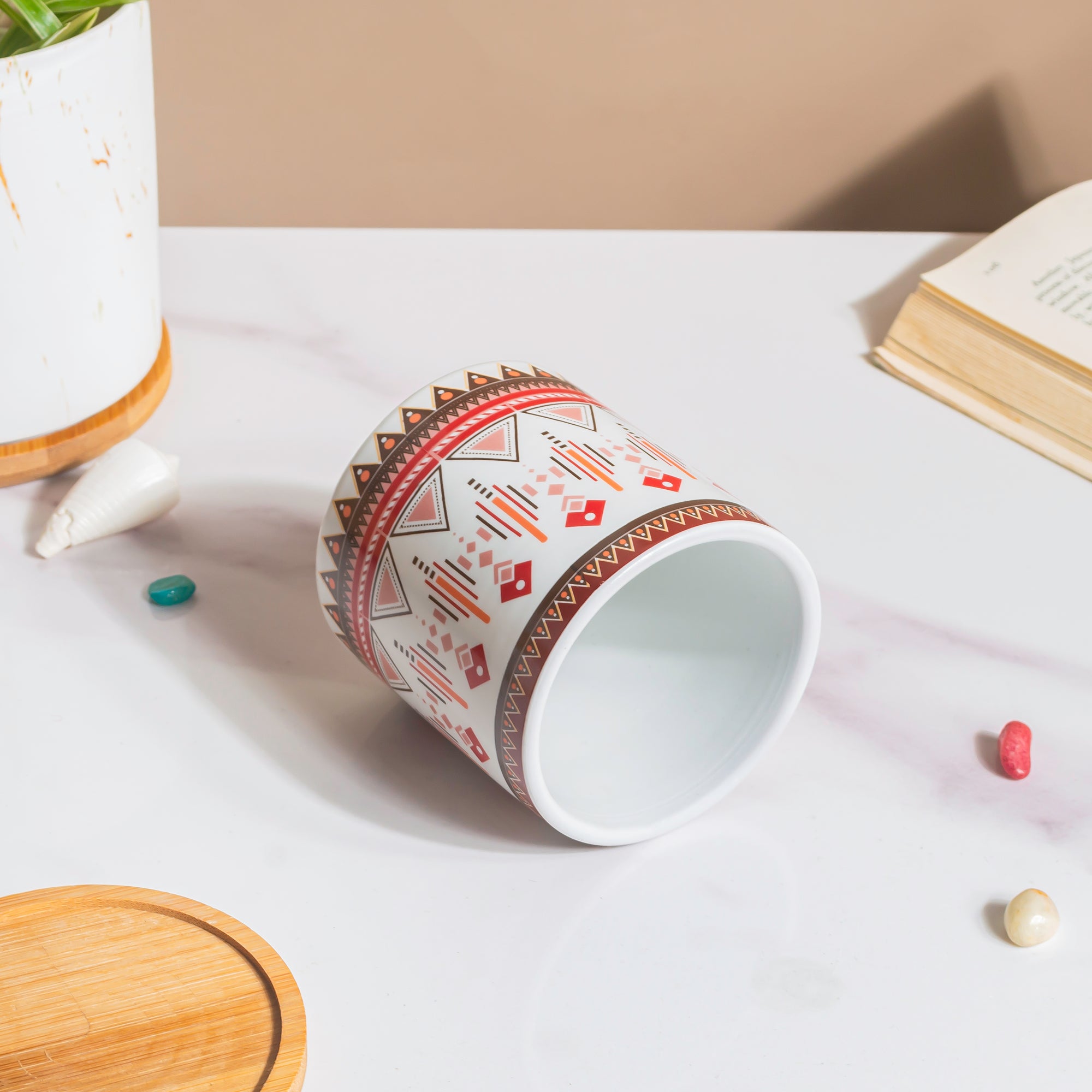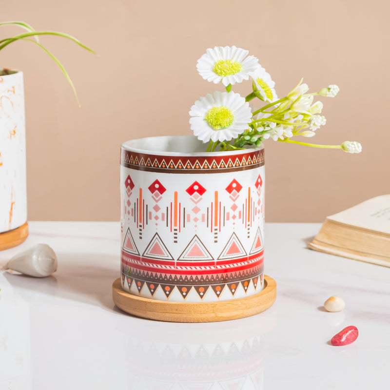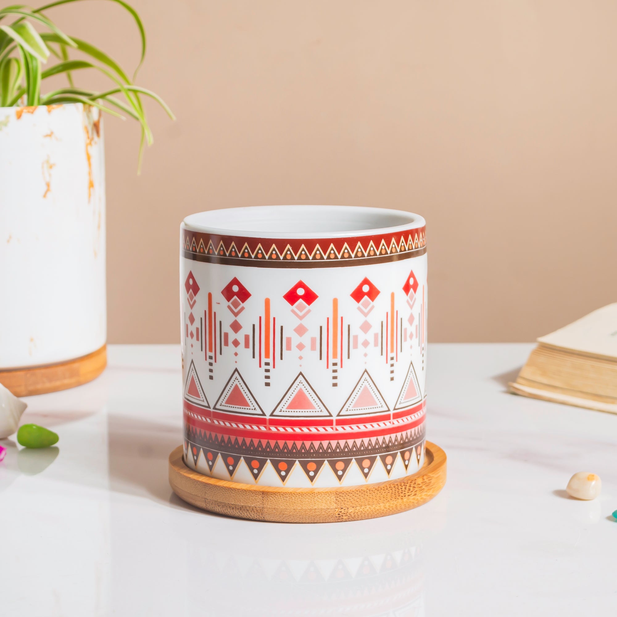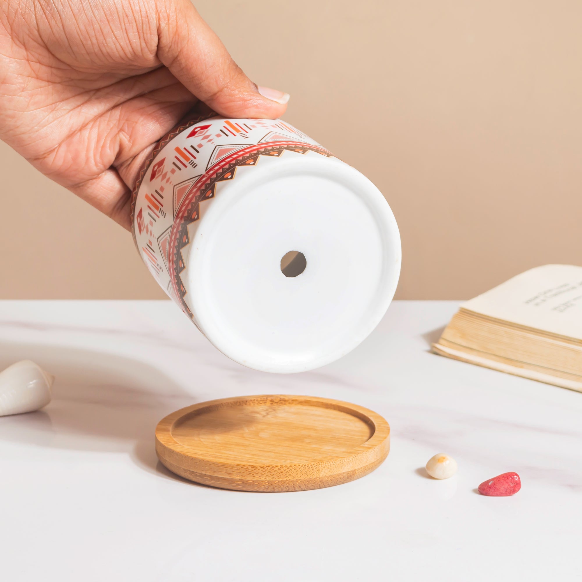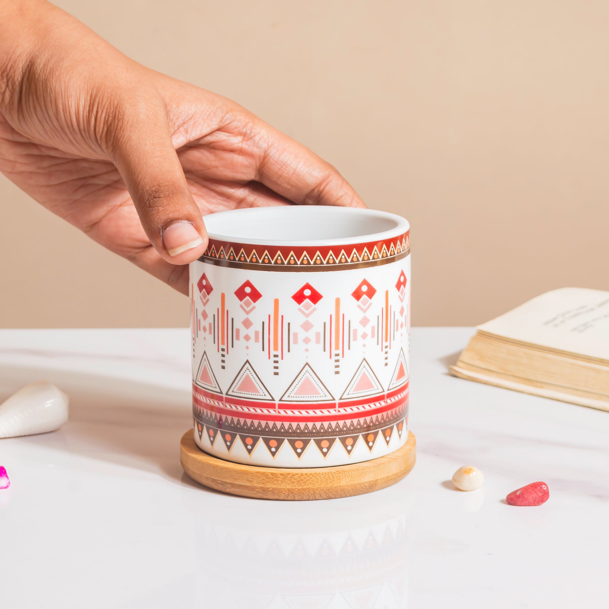 Noor Art Multicolor Ceramic Planter With Wooden Coaster