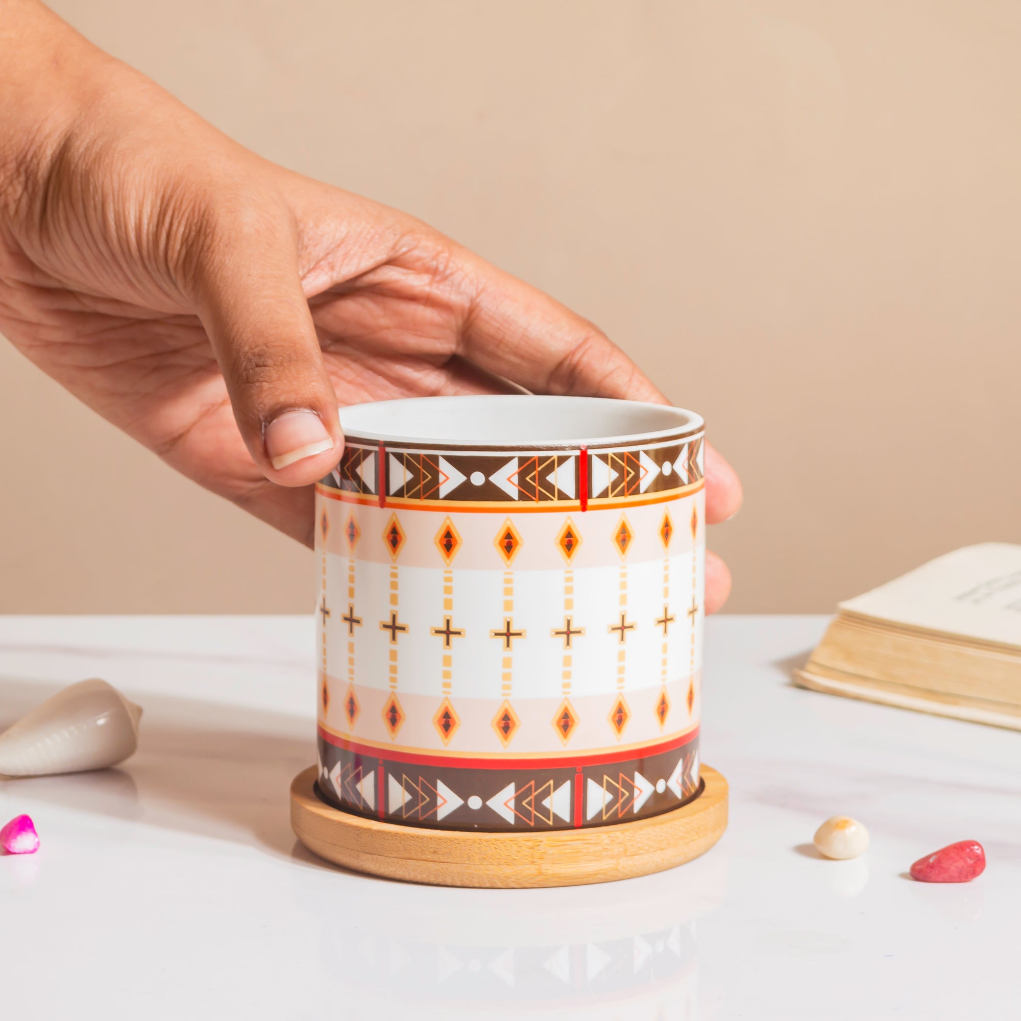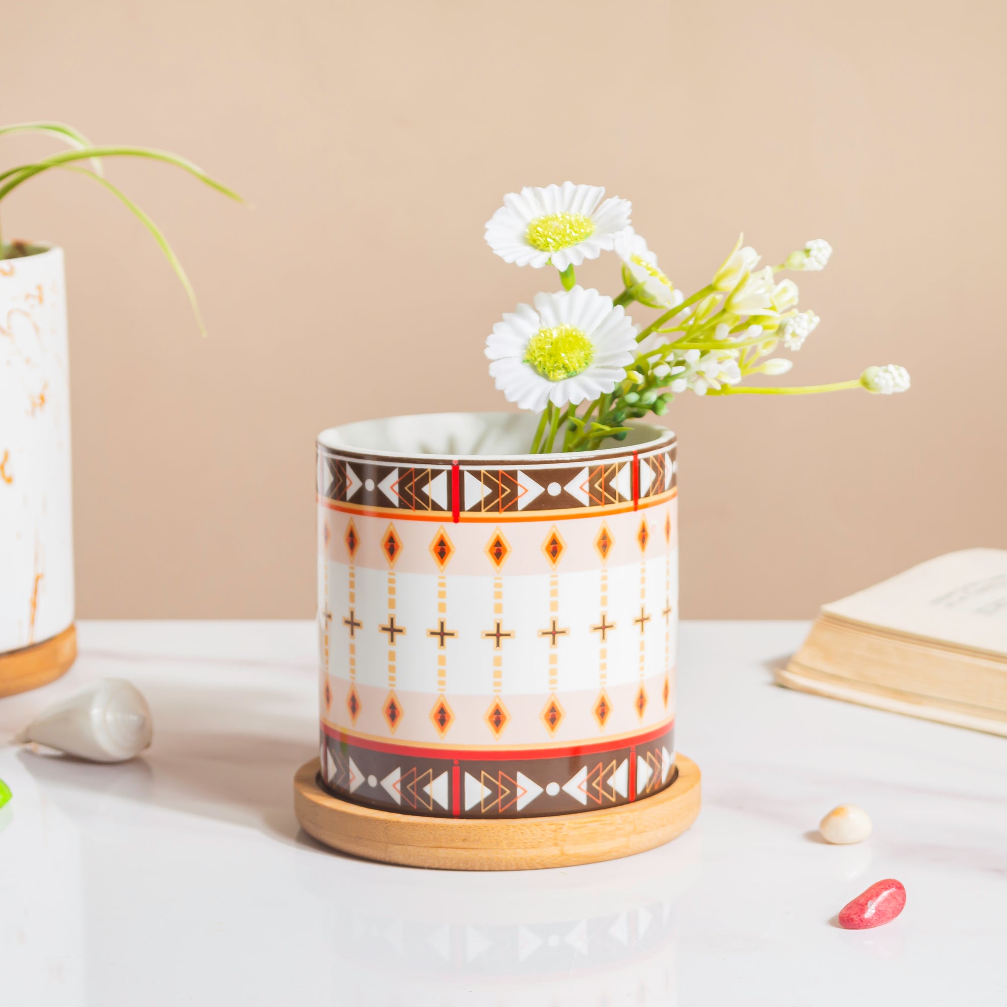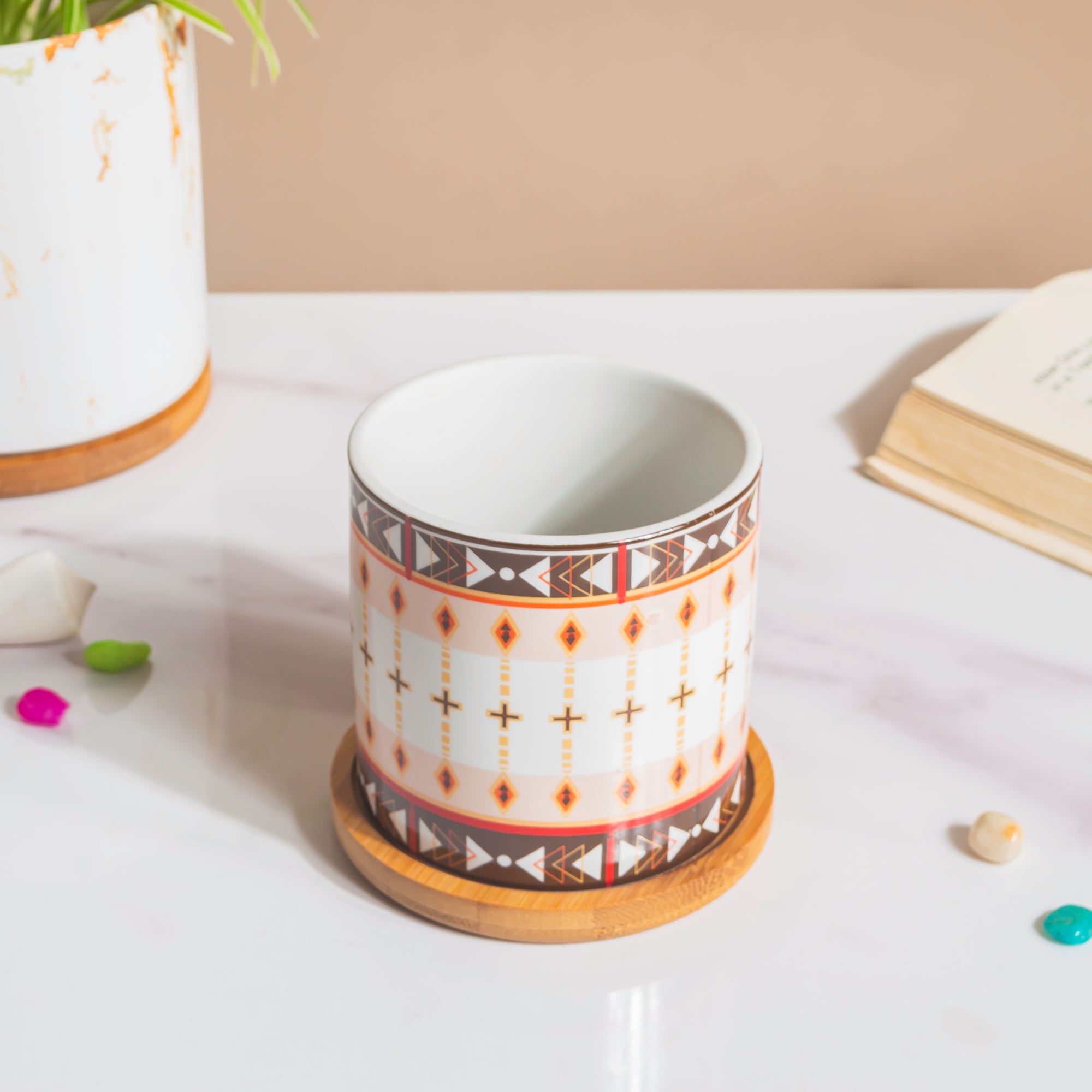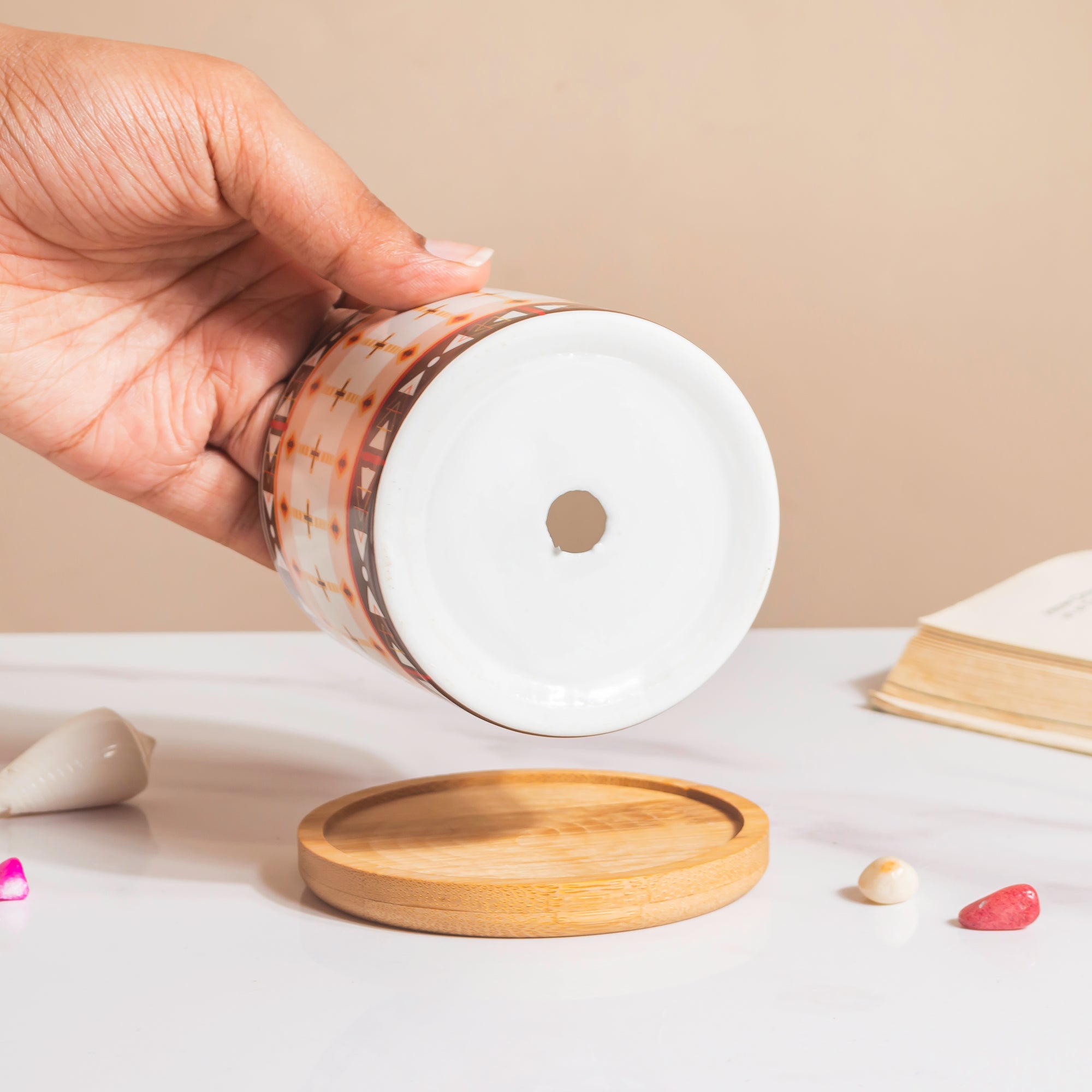 Noor Art Orange and Brown Planter With Wooden Coaster
