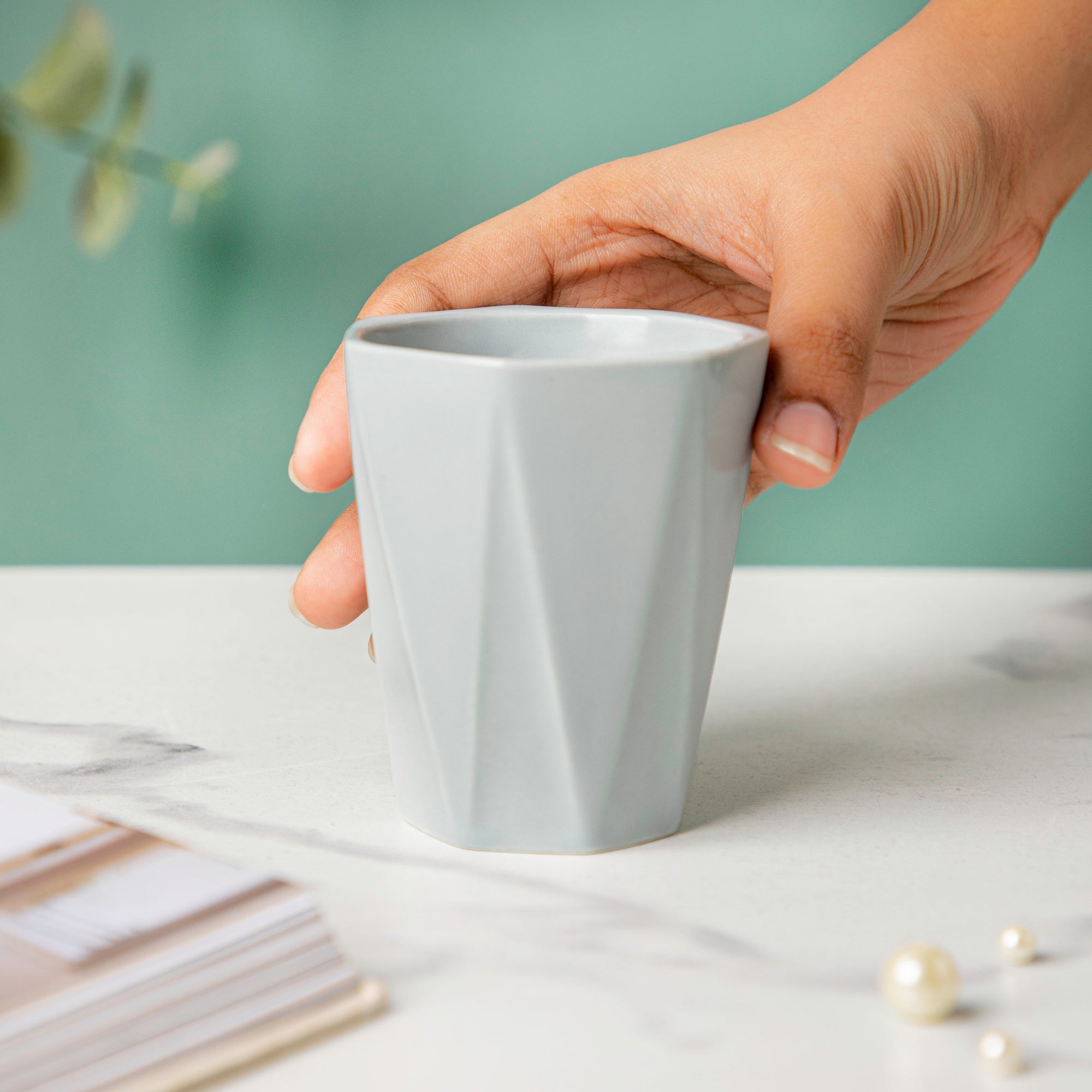 This sleek grey planter is sculpted in an attractive form with a textured finish for modern decor and is guaranteed to offer a depth of contemporary beauty to the living area. Place a palm leaf plant in the light-grey vase and place it in the entryway to amp up the decor.