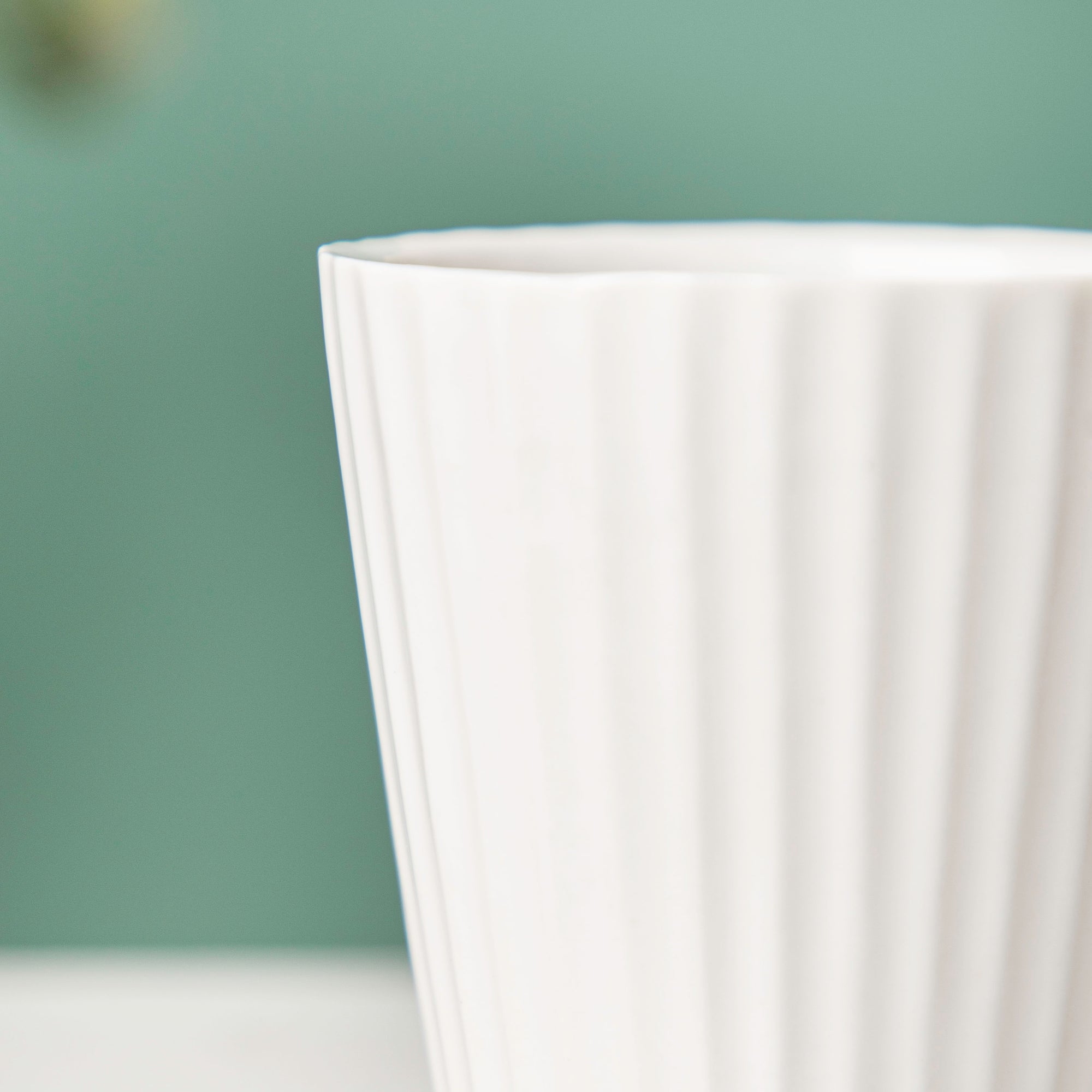 These ceramic planters are delicately fashioned with ribbed textures, giving the space an urban and minimalistic vibe. Enjoy the planter's matte surface and pure ceramic construction for a refined look. The planter not only provides a sense of tranquility, but also attracts positivity, harmony, and serenity.