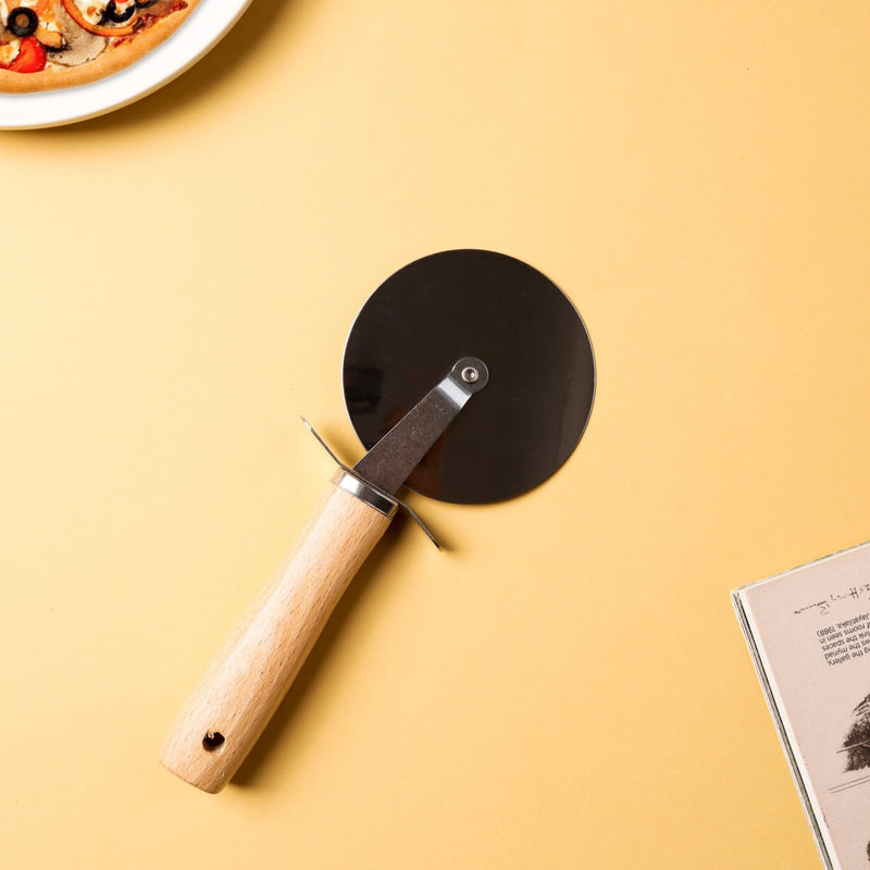 The pizza cutter is a classic piece with a circular blade and a straight handle. It is very handy and easy to use. The pizza cutter is a valuable addition to the essential kitchen collection.