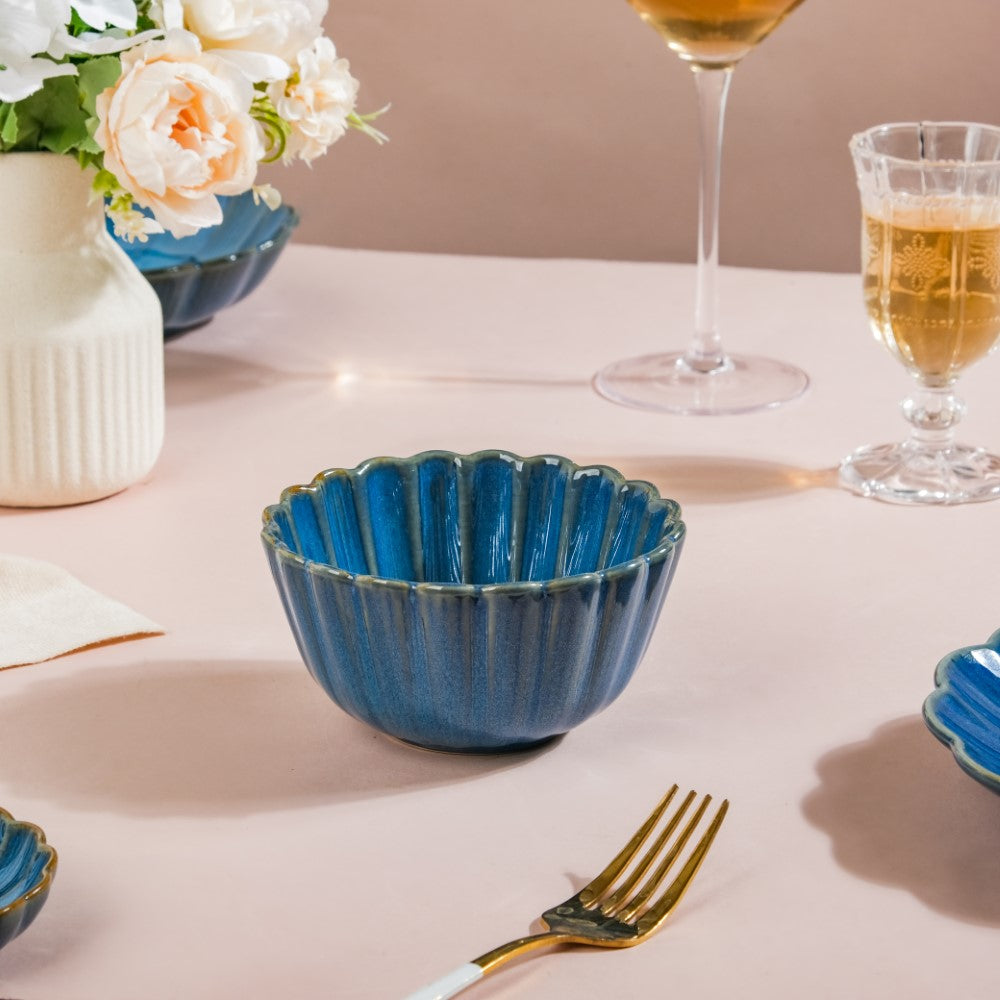 The side bowl from Nestasia's Ocean collection features a shape and colour that has been inspired by the rippling beach waves. The ceramic bowl has a scallop-textured surface and wavy rims with shades of brown. The ceramic bowl is ideal for serving soup, sweets, and side curries during a main course meal.
