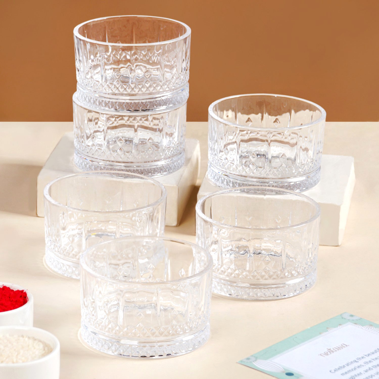 Embossed Glass Snack Bowl Set Of 6 220ml |