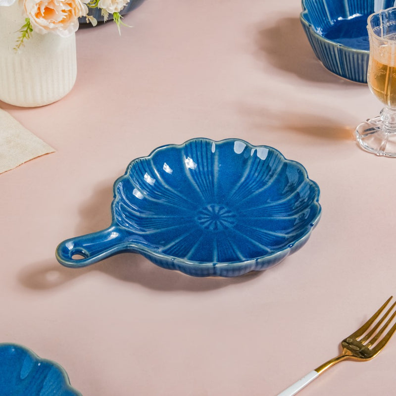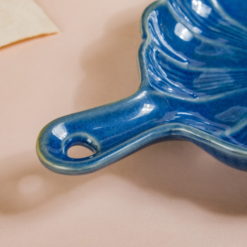 The rustic blue ceramic plate with handle is both practical and stylish, featuring a charming rustic design that's sure to impress your guests. The convenient handle on the side makes it easy to carry from the kitchen to the dining table, making it a great choice for breakfast in bed or outdoor dining. It's microwave safe, allowing you to heat up leftovers or prepare quick meals in a flash.