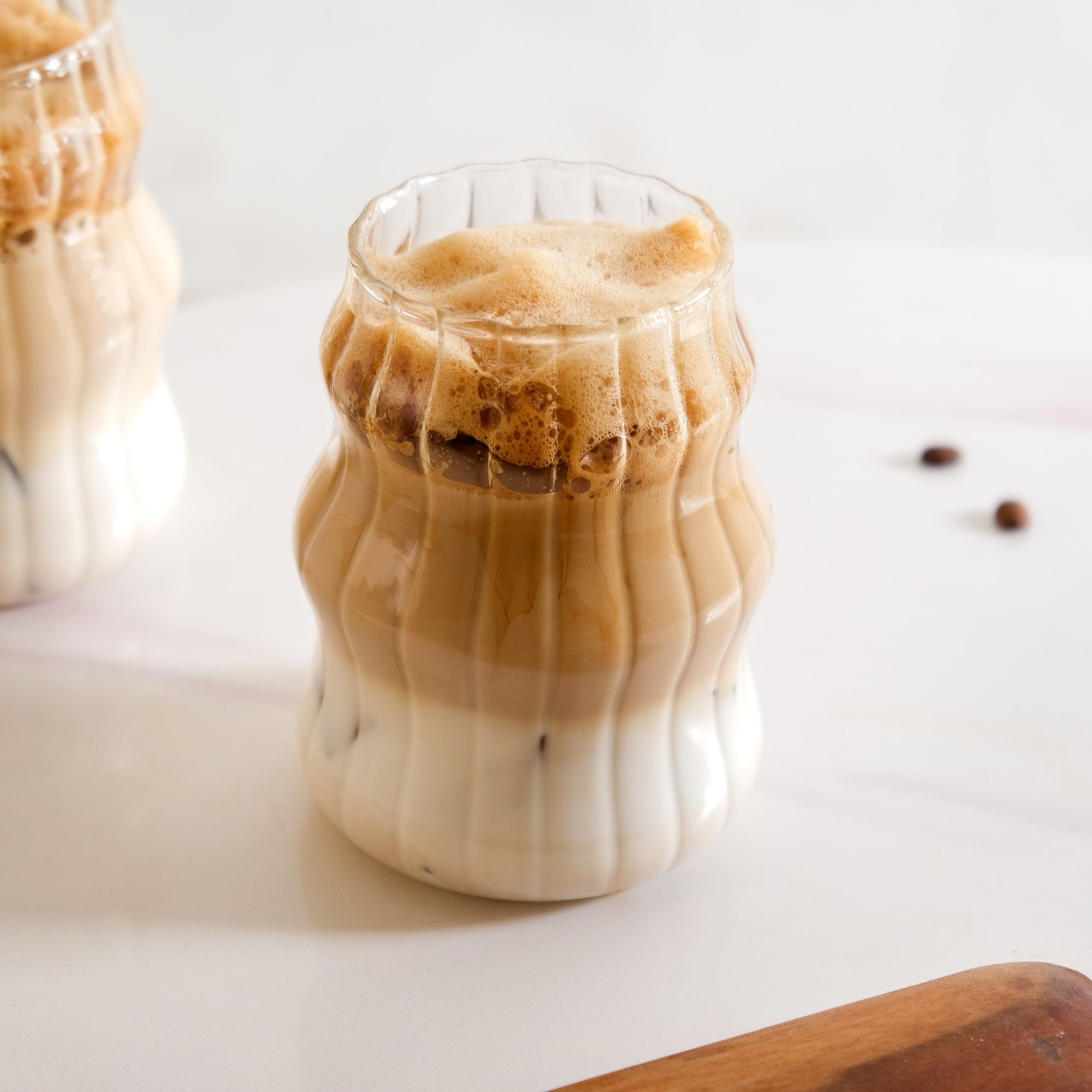 Design: Each tumbler is hand-blown using high borosilicate glass, crafted to showcase a sleek wavy rim and a curvy outer silhouette. The inner ribbed texture enhances grip while adding visual flair. A flat base ensures stable placement on any surface. The transparency of the glass highlights every drink’s hue. The elegant shape adds a sculptural touch to everyday sips.