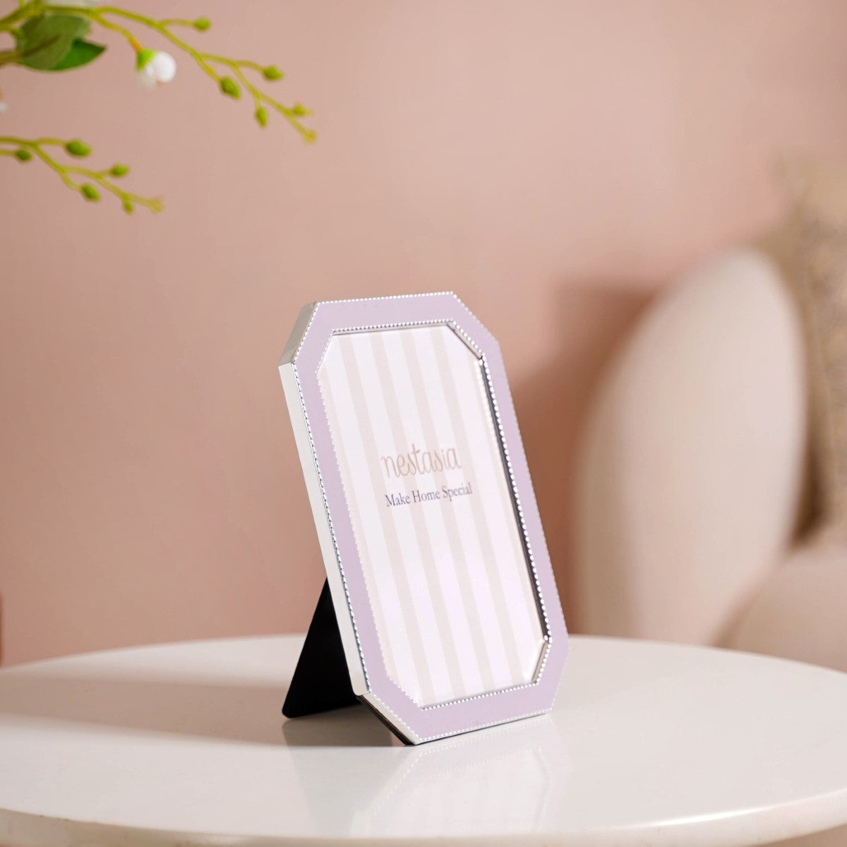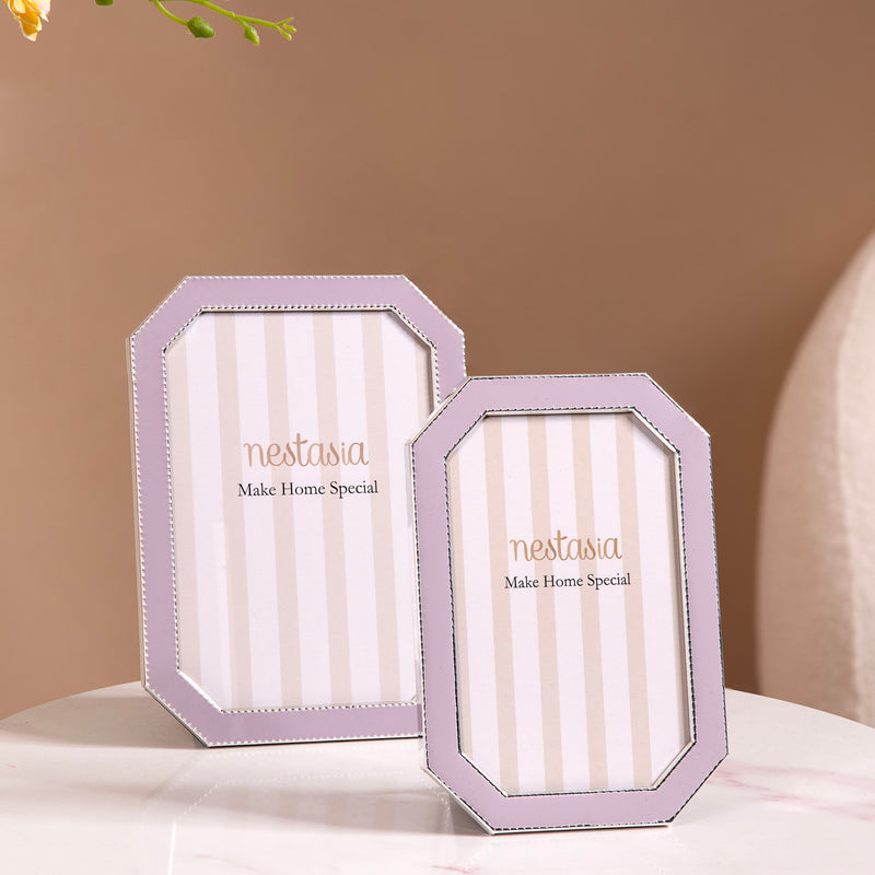 Discover the perfect harmony of form and function with our exquisite photo frame set. This delightful duo combines the serene charm of lavender with the modern appeal of octagonal frames. Crafted from premium materials, they're built to last while providing a touch of luxury. The frames include a sturdy easel stand for desktop display and a convenient back hook for wall mounting, offering you versatile placement options. Whether adorning your own space or gifting to someone special, these frames are a statement of elegance and taste.