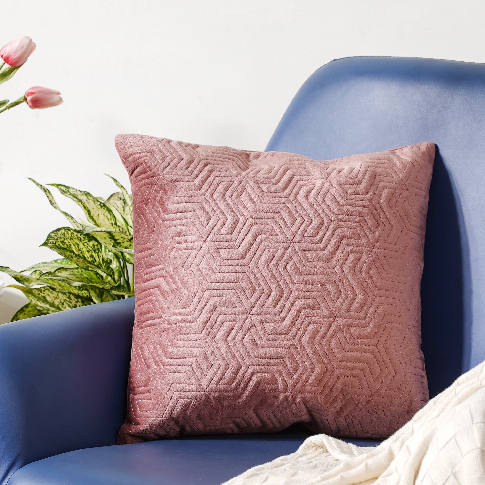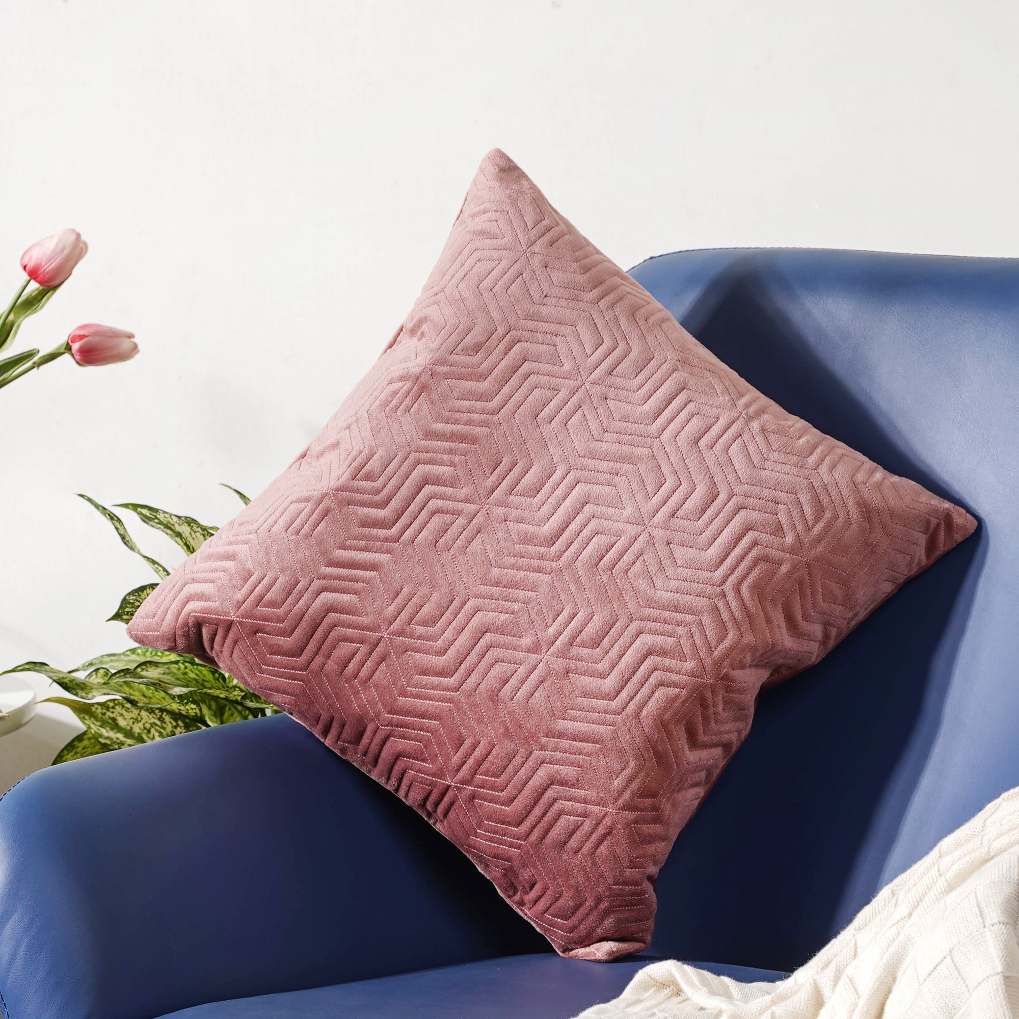 The gorgeous multi-directional pattern in the light hue of purple color is ideal for all contemporary homes. The pillow cover can be a statement piece in one's bedroom or living room if mixed and matched with other colors and patterns. The cushion cover comes with minimal geometric patterns which imparts a fascinating look. Nestip: One can combine the cushion cover with satin cushion covers of a similar shade. Size: 16 inch x 16 inch Colour: Mauve Material: Velvet Products included: 1 cushion cover Style: DC01NSM17