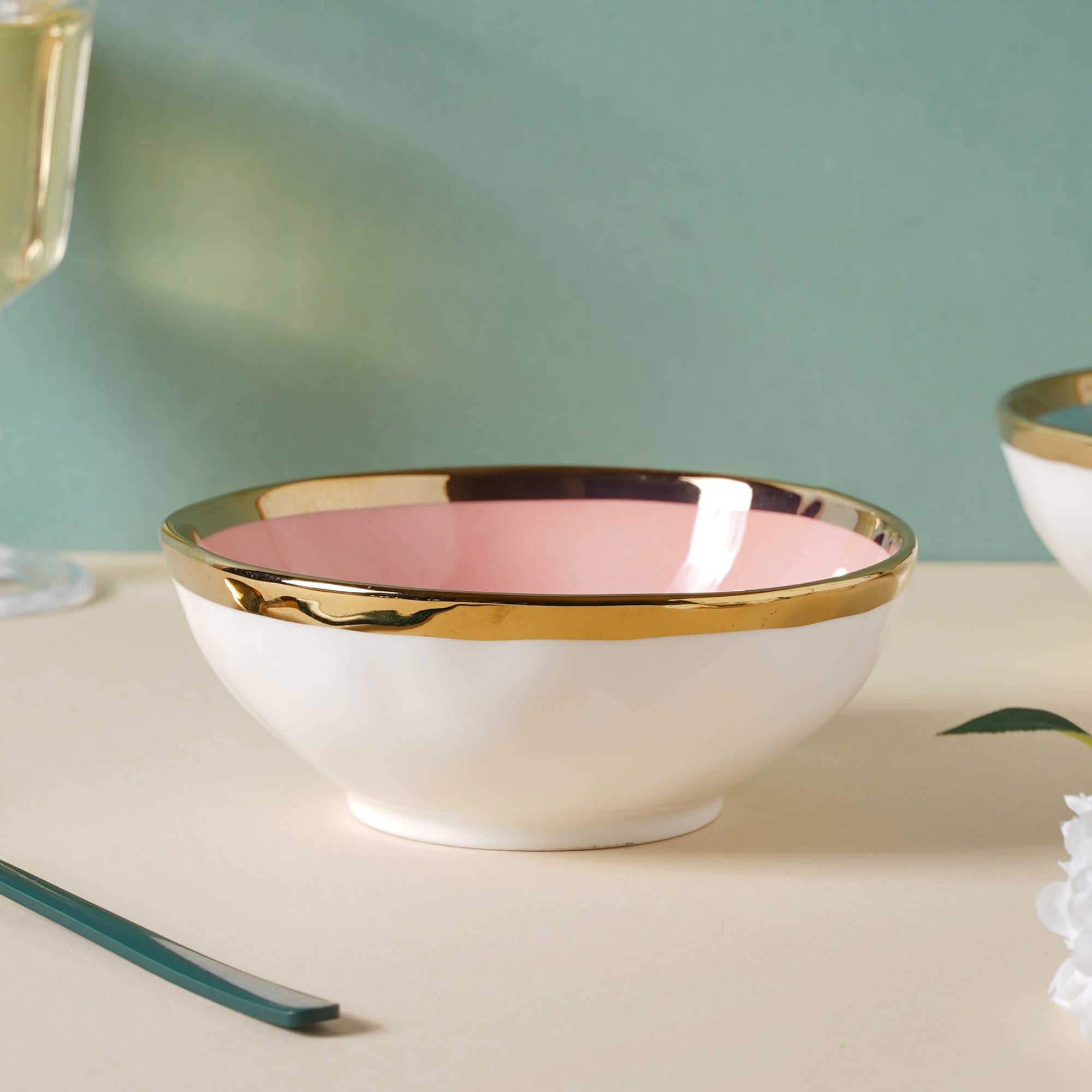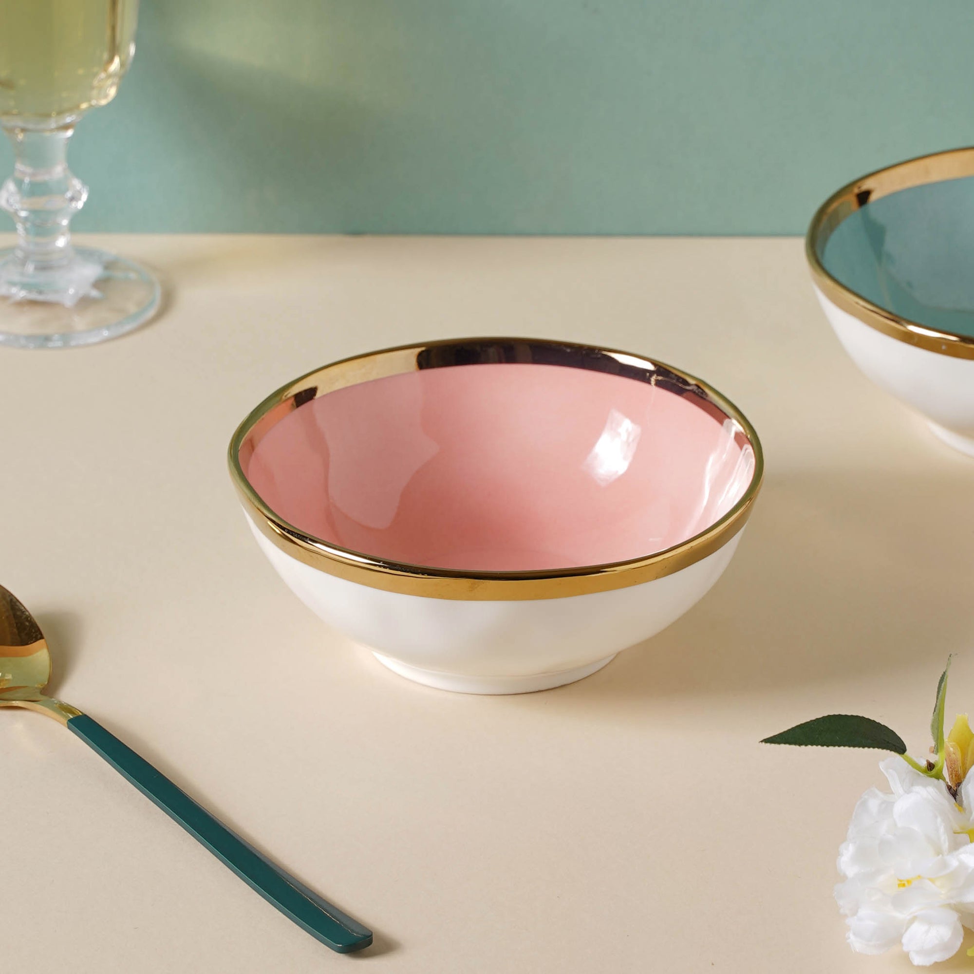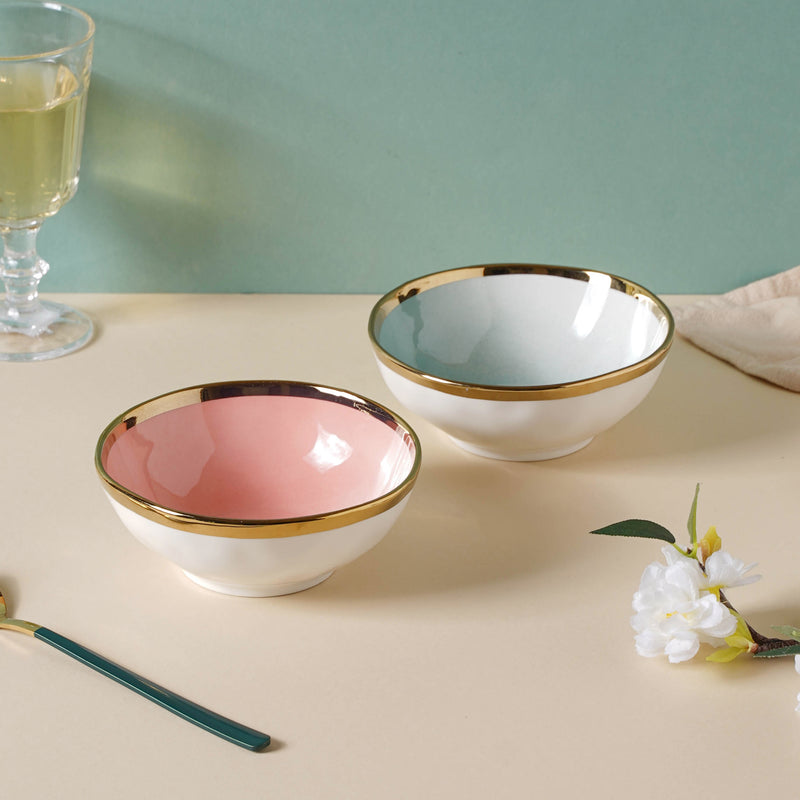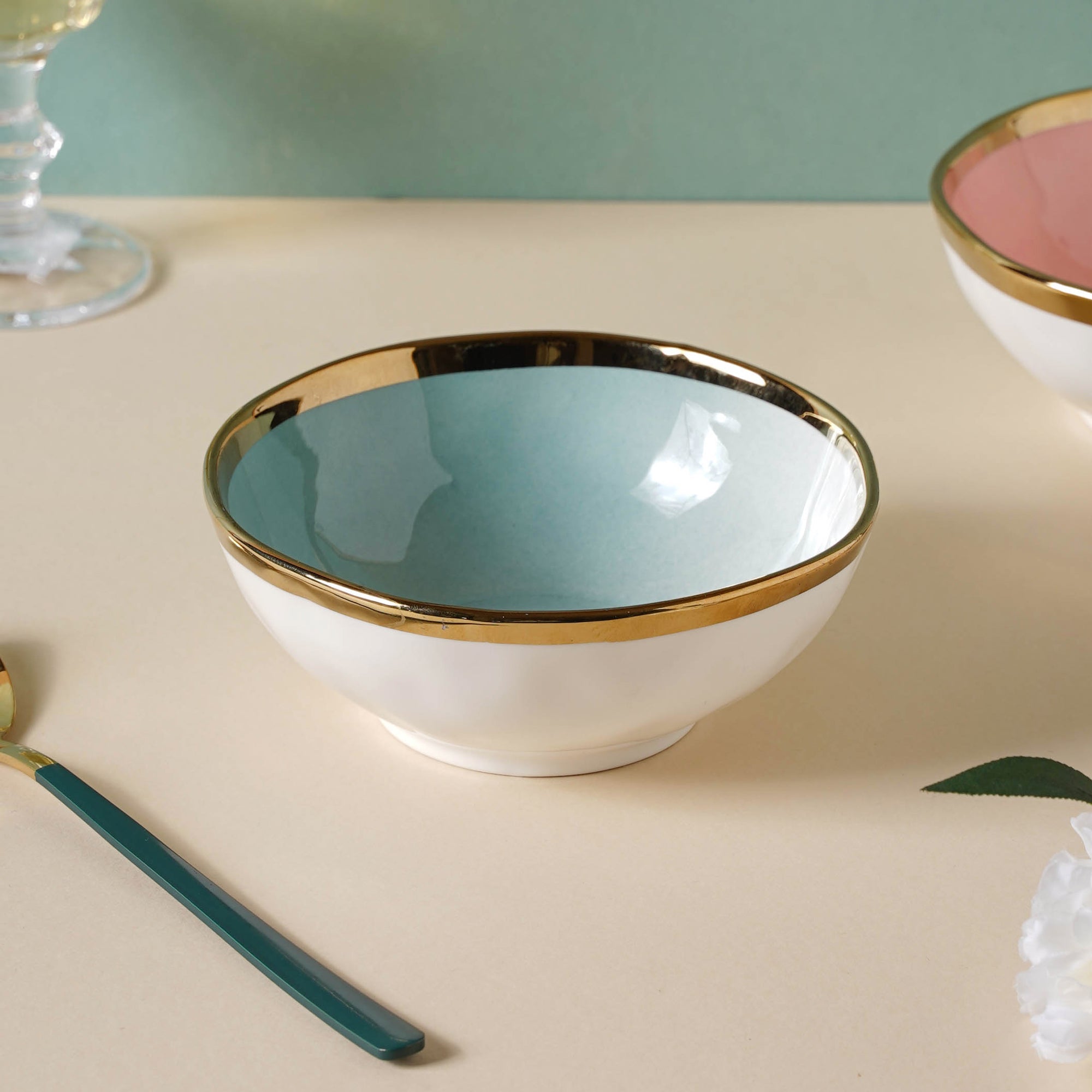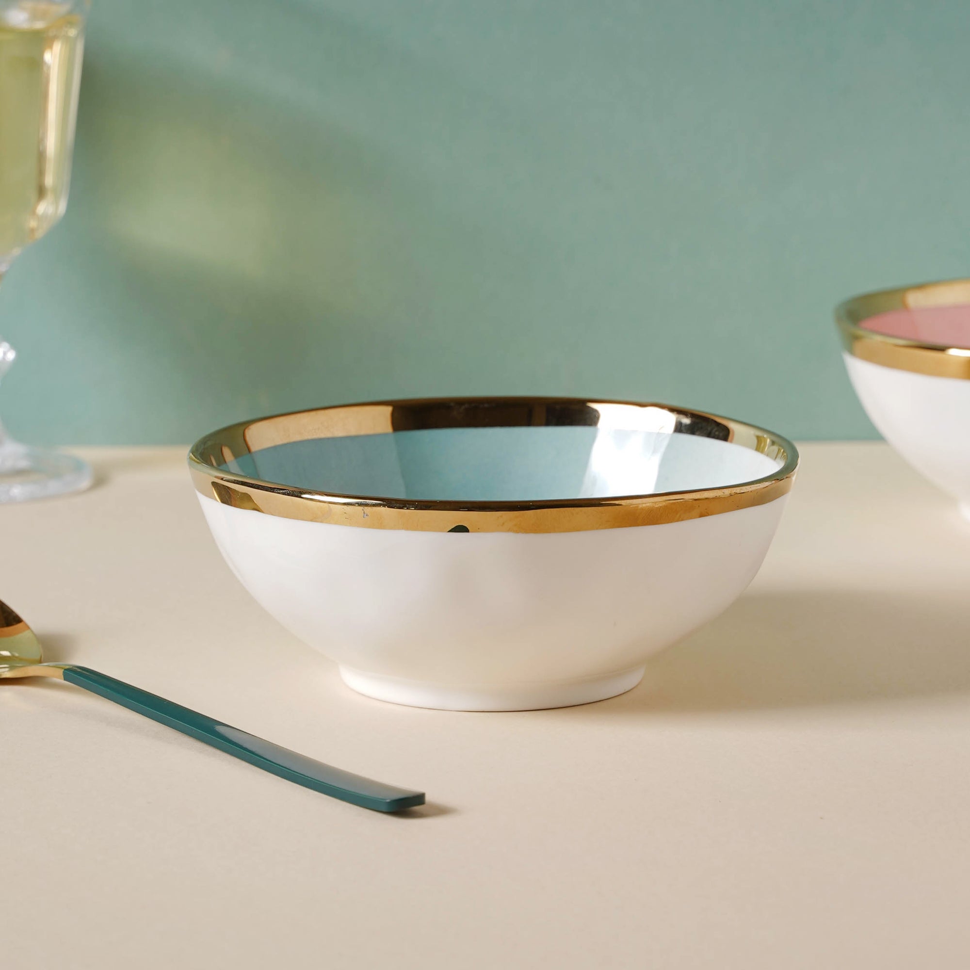 The ombre appetizer bowl is an ideal bowl for serving ice cream dessert, cereal, snack, fruit, rice, and pudding. The snack bowl, crafted in ceramic, is embellished with a gold rim which makes it a classic and timeless piece on the dinner table. The bowl can also be used to serve lentils and small servings of soups. The ombre bowl adds a burst of color to any tablespace.