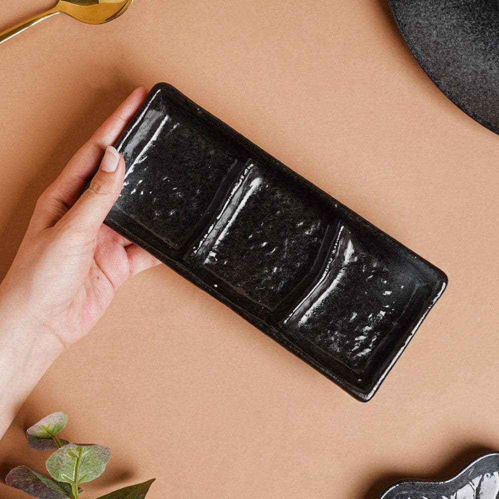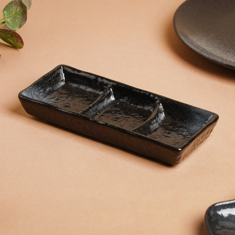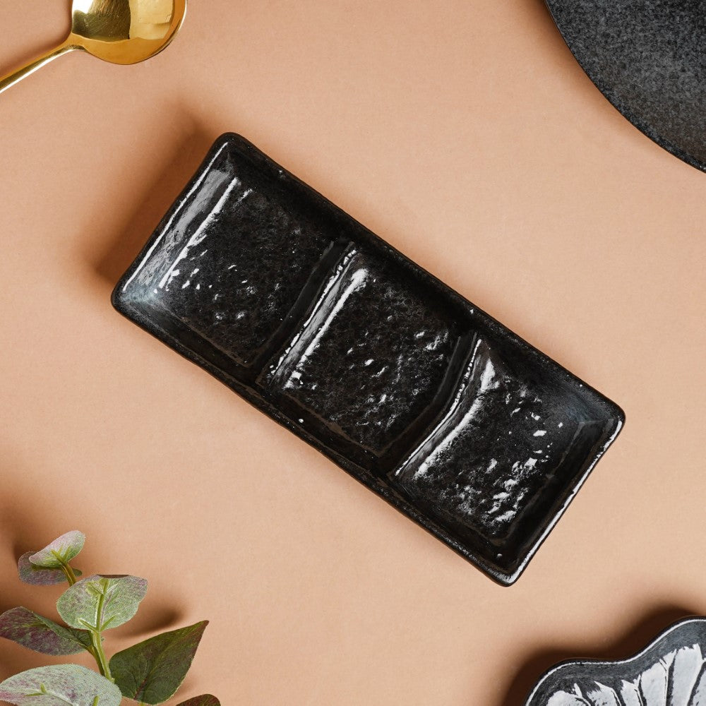 Onyx Finish Stoneware 3 Section Dip Plate