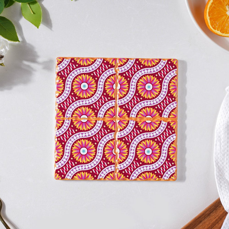 The traditional Moroccan tile pattern and Persian style art are well-known throughout the world. They can be called the “world’s eighth wonder” for their intricacy, vibrant hues, and harmonious blend of mandalas. Our collection of ceramic coaster/trivet is a gateway to incorporate this eighth wonder into your living room, dining table or as a beautiful decor piece. While the trivets are the quintessential companion of your ceramic, earthen, copper, clay, glass pots, hotpots, pans, bowls and plates, other cookware, the coasters can be the new best friends of serveware, wine glasses, cocktail glasses, and glass coffee mugs or cups.