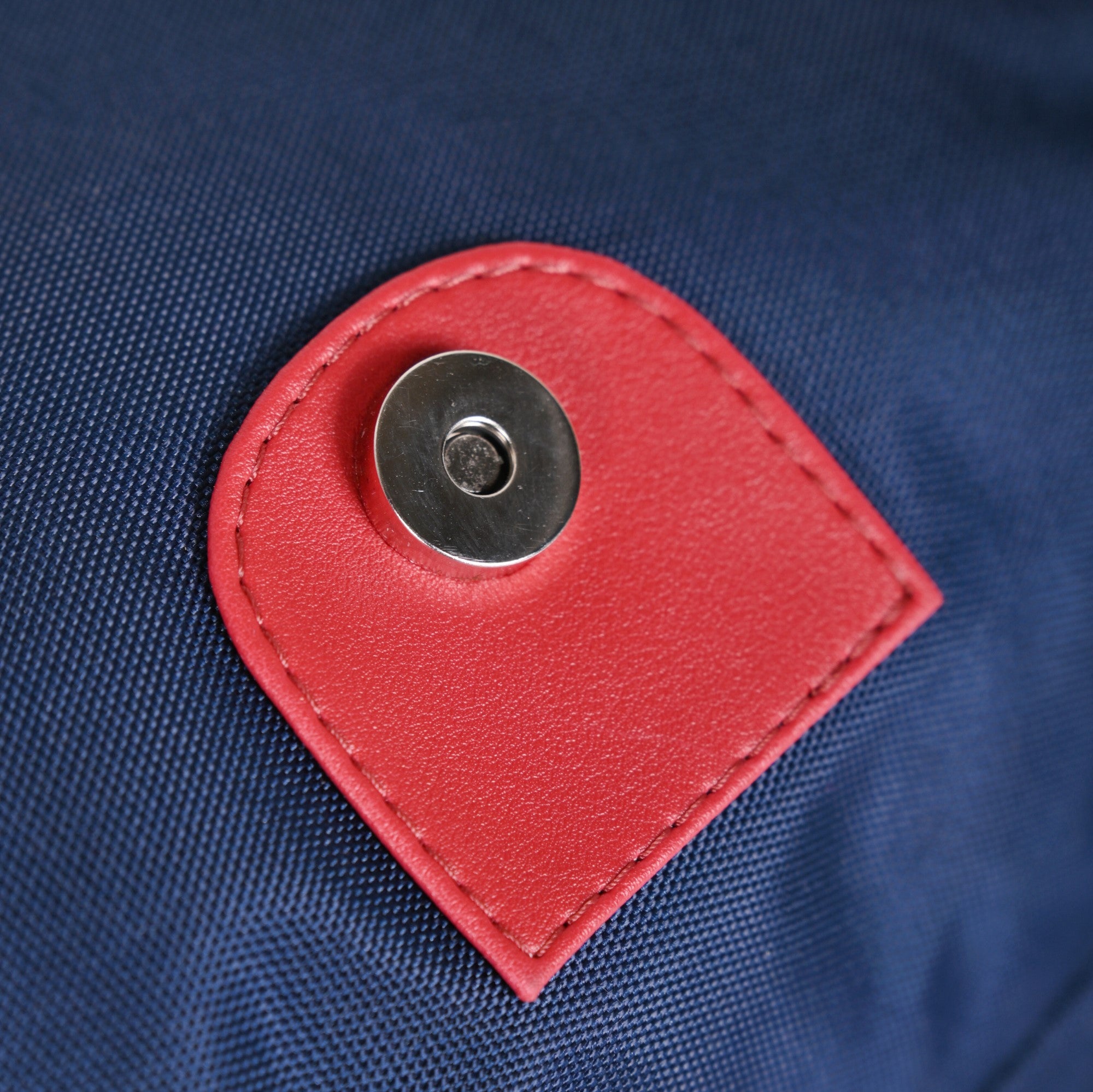 Design: Crafted with high-density nylon and PU leather, the shoulder bag is designed for durability while maintaining a refined look. The water-resistant polyester lining protects your belongings from accidental spills or light rain. Featuring a zippered main compartment, an inner zippered pocket, and two flat pockets, it offers ample space for your essentials. Long, sturdy handles ensure comfortable carrying, while the magnetic closure on the red top flap adds an extra layer of security. Smooth metal zippers enhance the sleek aesthetic and functionality.