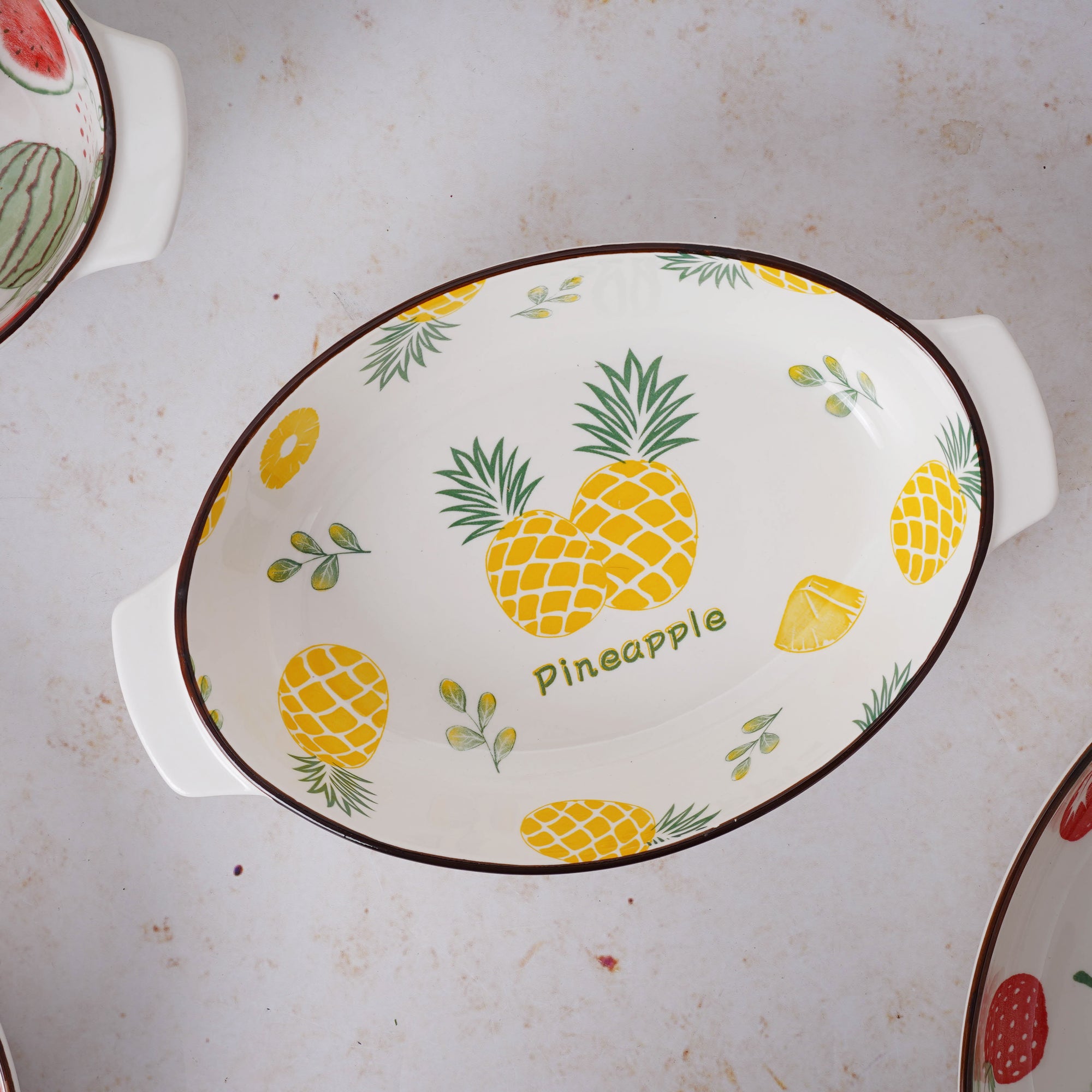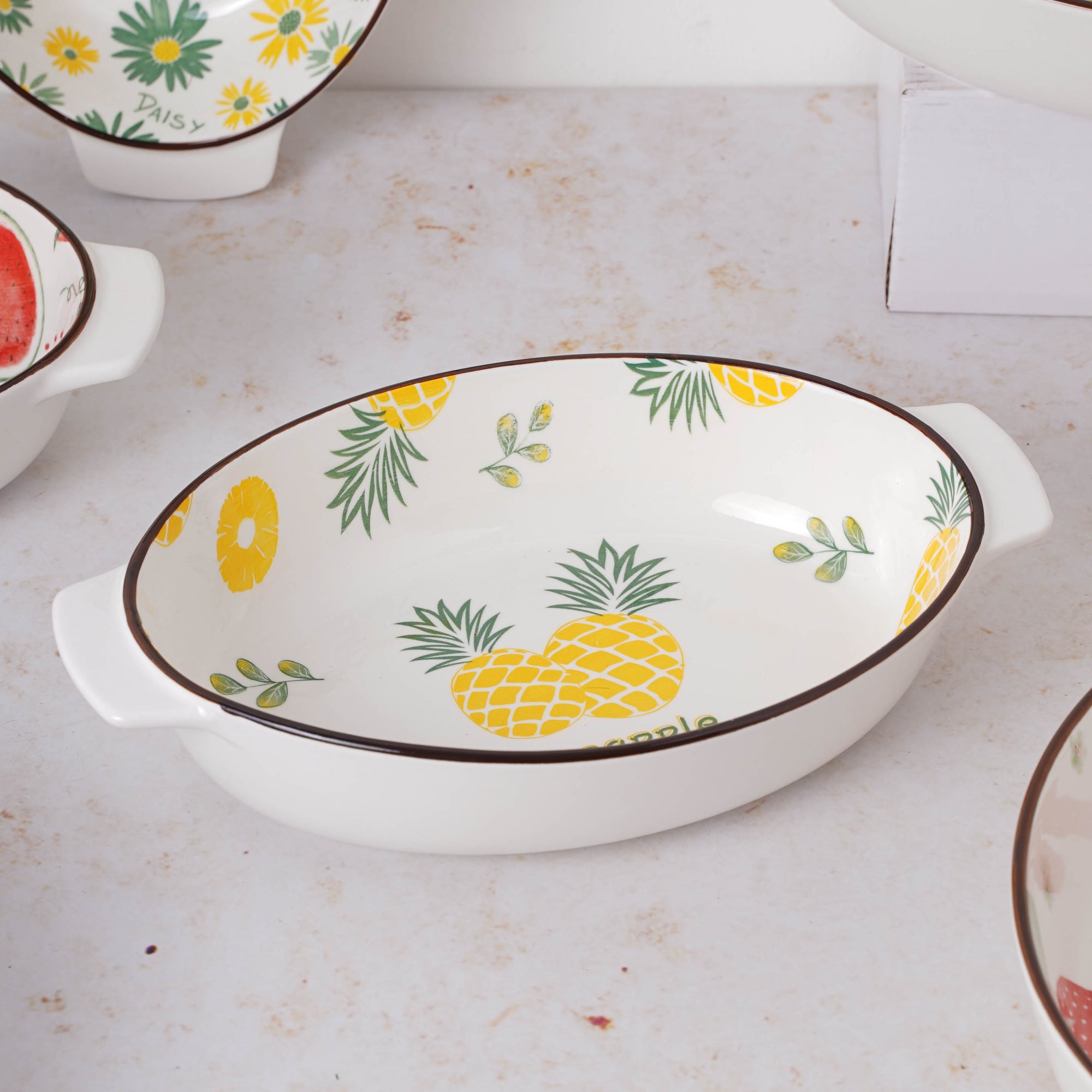 Colour: Lemon, daisy and pineapple - yellow, green, brown and white Cherry, strawberry and watermelon - Red, green and whiteMaterial - Ceramic