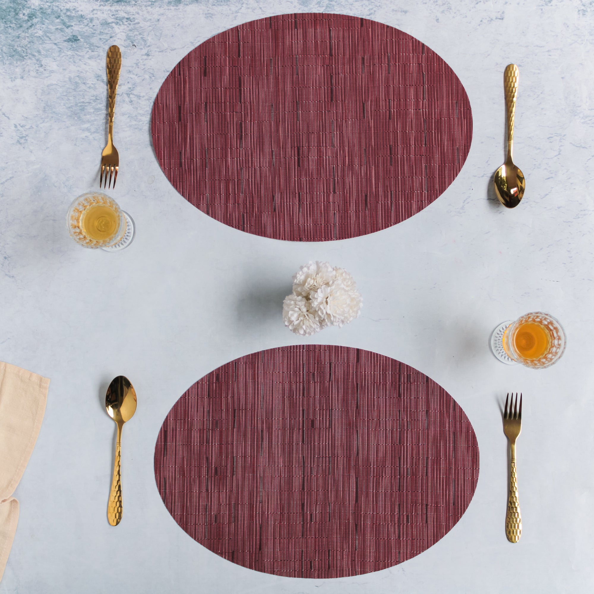Oval Table Mat Maroon Set of 2