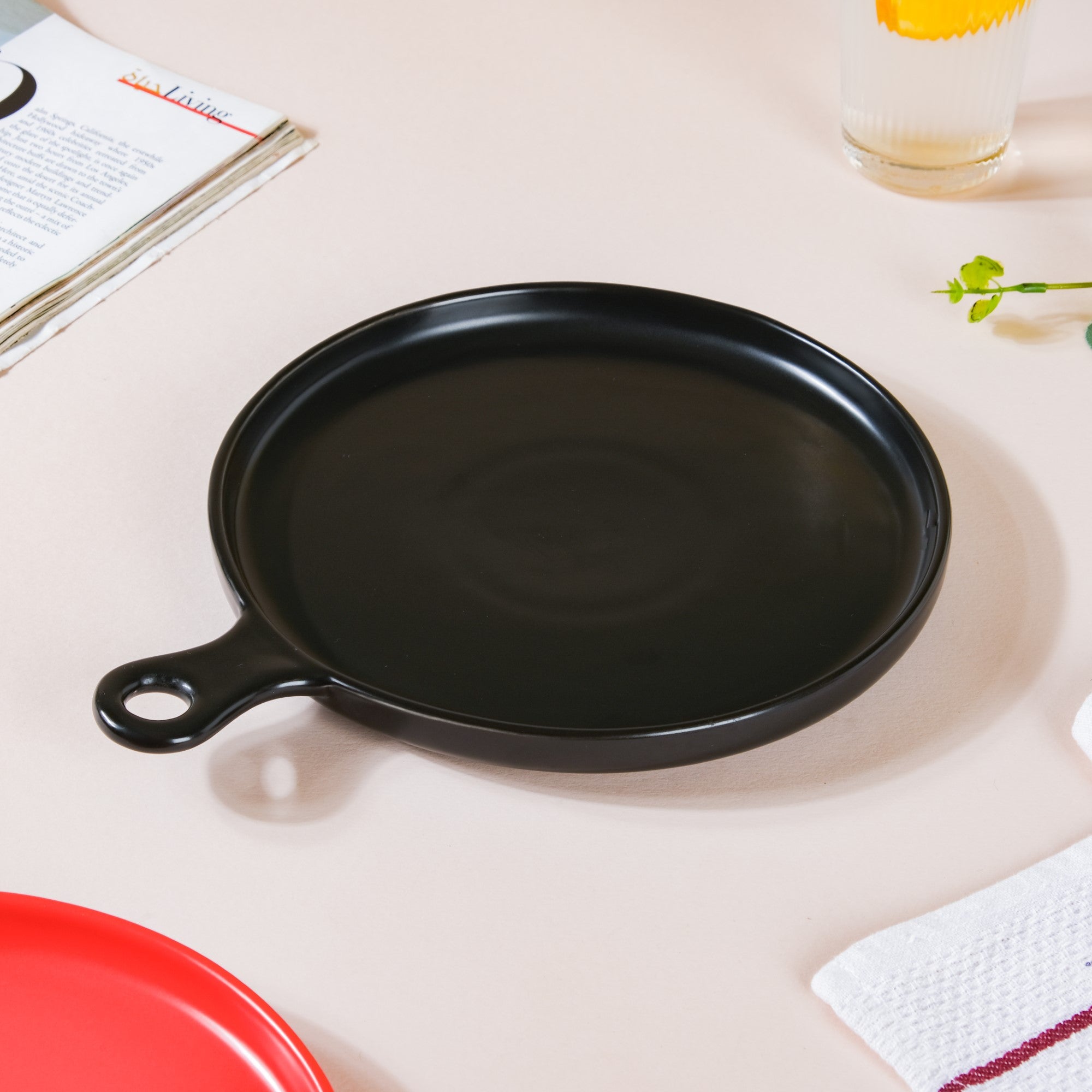 For a superior bake and serve experience, use our ceramic grill plate for the oven. The sleek black plate may be utilised to serve dishes as a food board for serving a variety of snacks, including cheese, fruit slices, bread croutons, bread sticks, and much more. For a fine dining experience, bake and serve various foods including vegetables, meat, pizza, pasta, and more on the dish. The dishes may be used in the oven, microwave, and dishwasher.