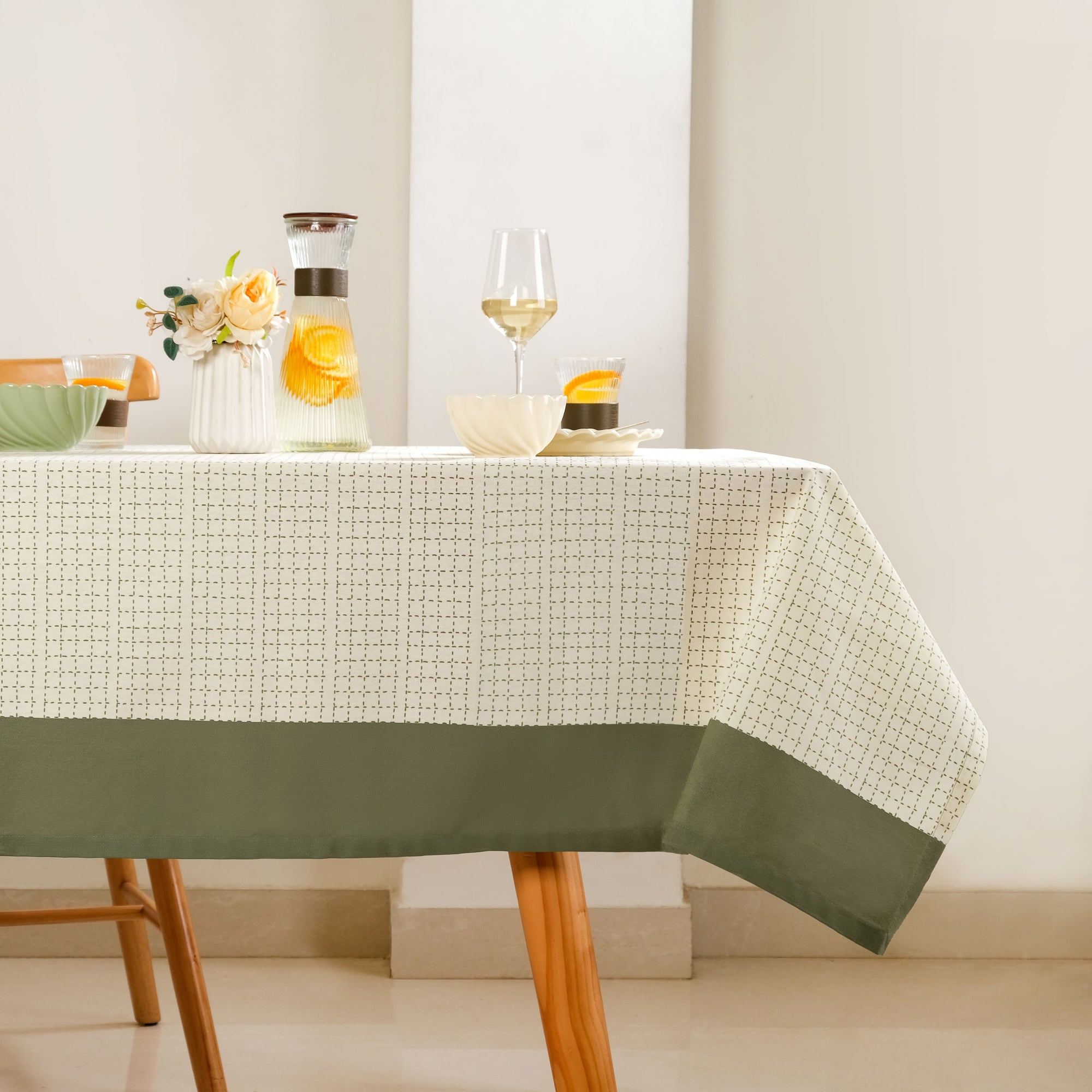 Design: The unique running stitch grid pattern adds texture and artisanal character, transforming your table into a sophisticated centrepiece. Measuring 203x152cm, it offers perfect coverage for six-seater tables with an elegant drape. The design features a delicate running stitch grid pattern that creates subtle texture and visual interest across the entire surface. This minimalist geometric detailing provides a contemporary interpretation of traditional hand-stitching techniques, adding depth and character while maintaining a clean, versatile aesthetic that complements various dining styles and tableware collections.