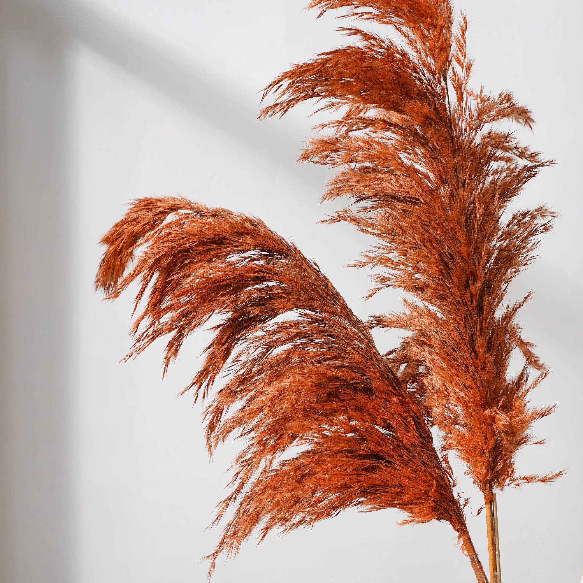 Whether you use the pampas grass as a standalone accent in a large floor vase or clubbed together with lavenders, bunny tails, and more, these distinct forms and gorgeous rust colours will make it a standout addition to any room.