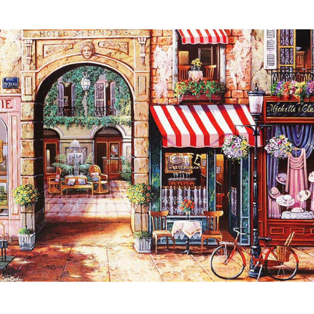 Adorn the beauty of the Parisian streets with a comfy bakery and a vintage clothing shop. Featuring a blend of bright and subtle colours, the painting highlights the beauty that the city has to offer with its age-old buildings and architecture, highlighted by intricate brushstrokes.