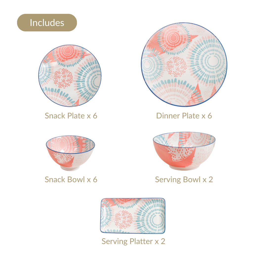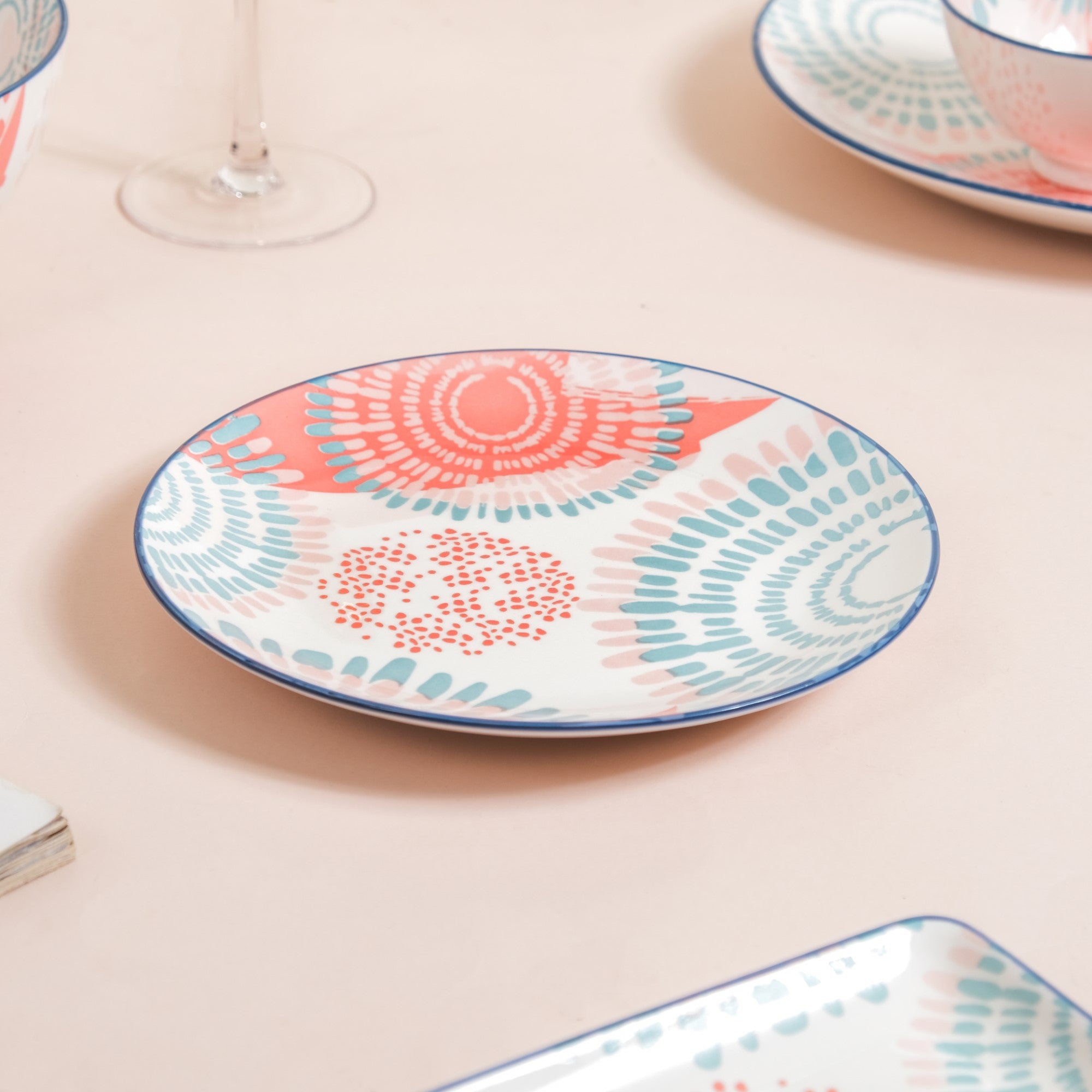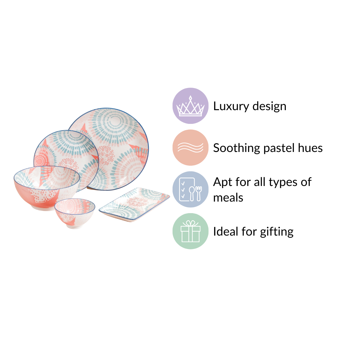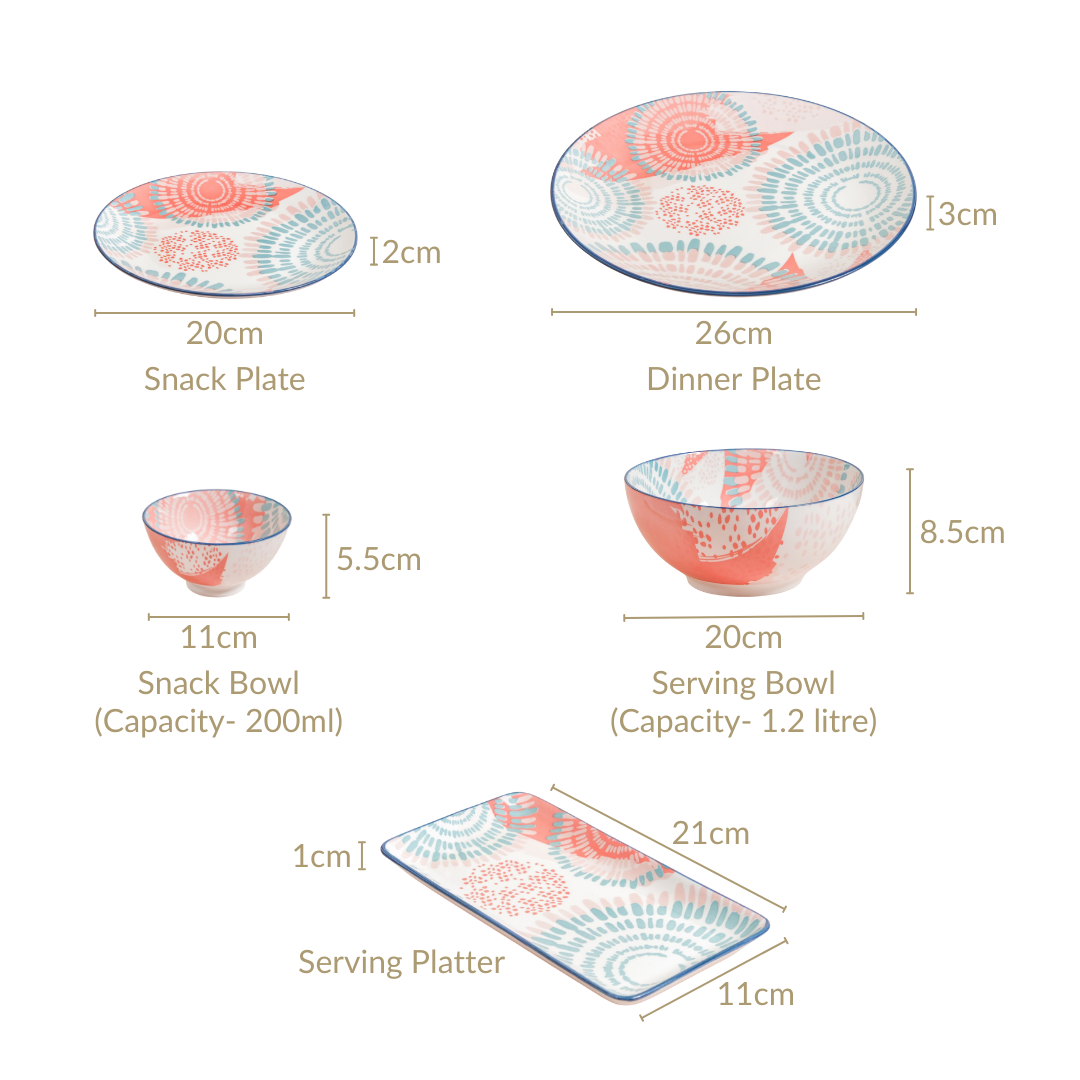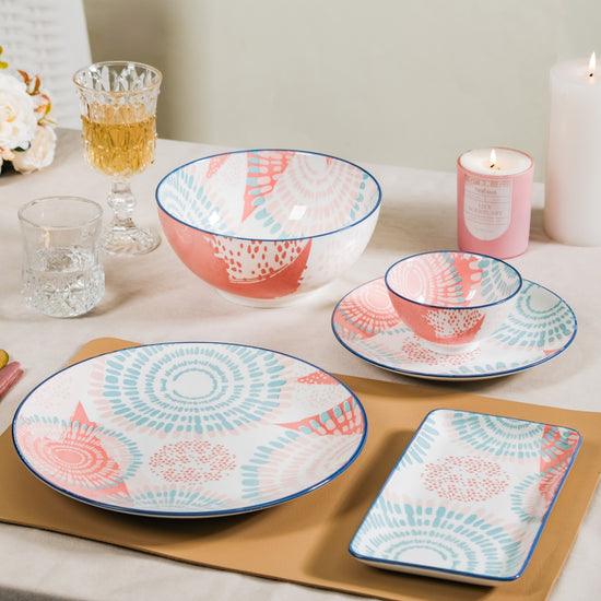 Introducing our premium ceramic dinner set, the epitome of dining excellence. Crafted from the finest ceramic material, it perfectly combines opulence and sustainability. This 22-piece dinner set, tailored for 6 diners, is a fusion of art and functionality. Its calming pastel tones and mesmerizing spiral tie-dye patterns exude tranquillity, while the abstract modern art design adds an unparalleled touch of elegance. With microwave and dishwasher-safe attributes, it seamlessly fits your modern lifestyle. Elevate your dining experience and adorn your table with the pinnacle of sophistication – perfect for both home decor and gifting.