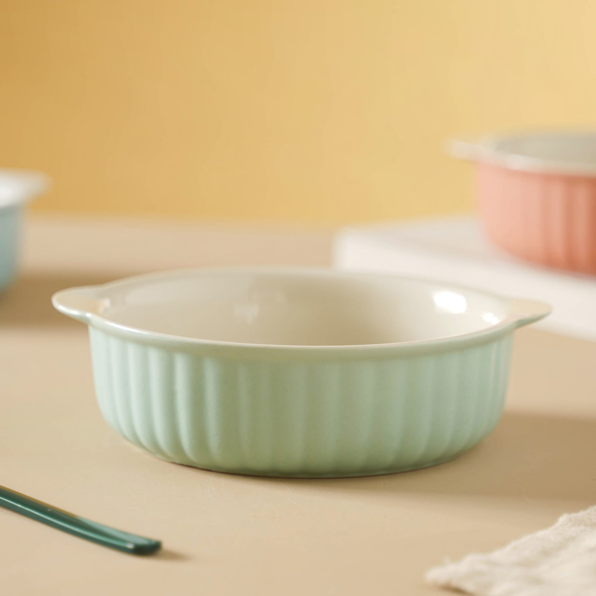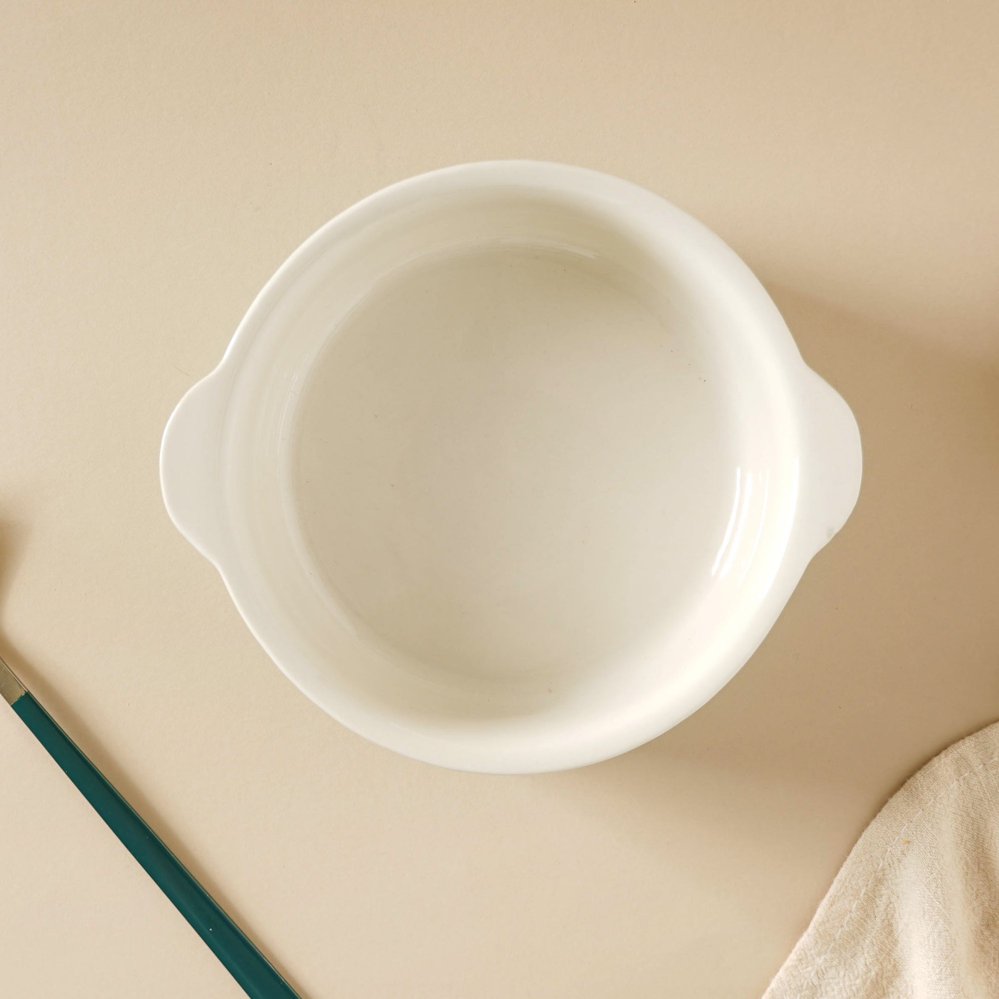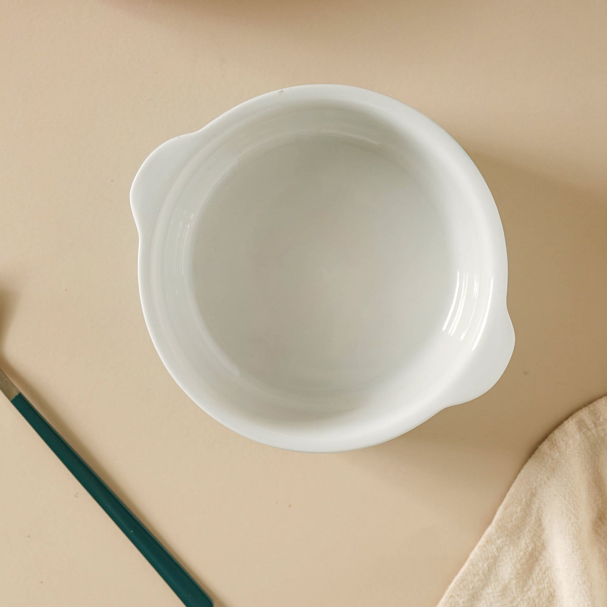 The textured snack bowl in white with a chevron pattern is crafted in ceramic and can be used as a serving bowl to treat guests on any occasion. Use the small round bowl as a fruit bowl, soup bowl, or salad bowl and pair it with a white ceramic dish to complete the look. The bowl looks classy and can be used to heat or reheat food in the microwave.