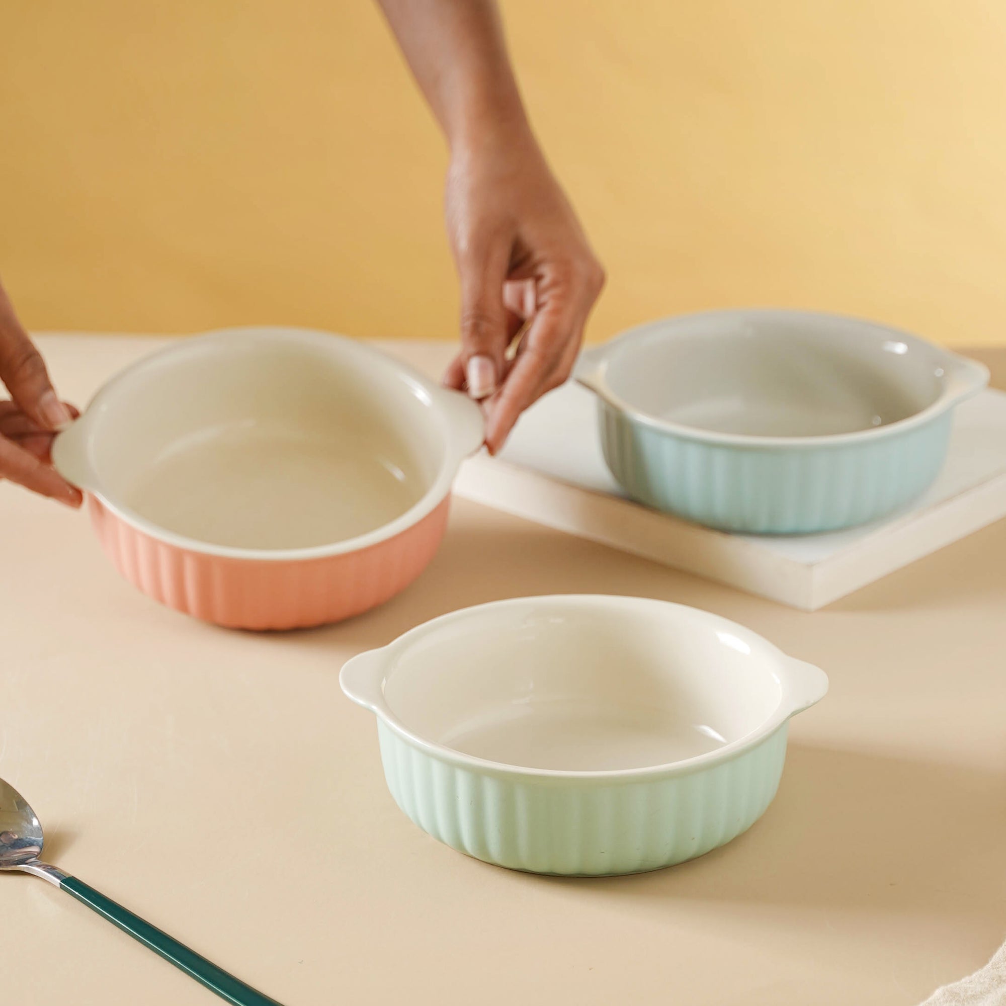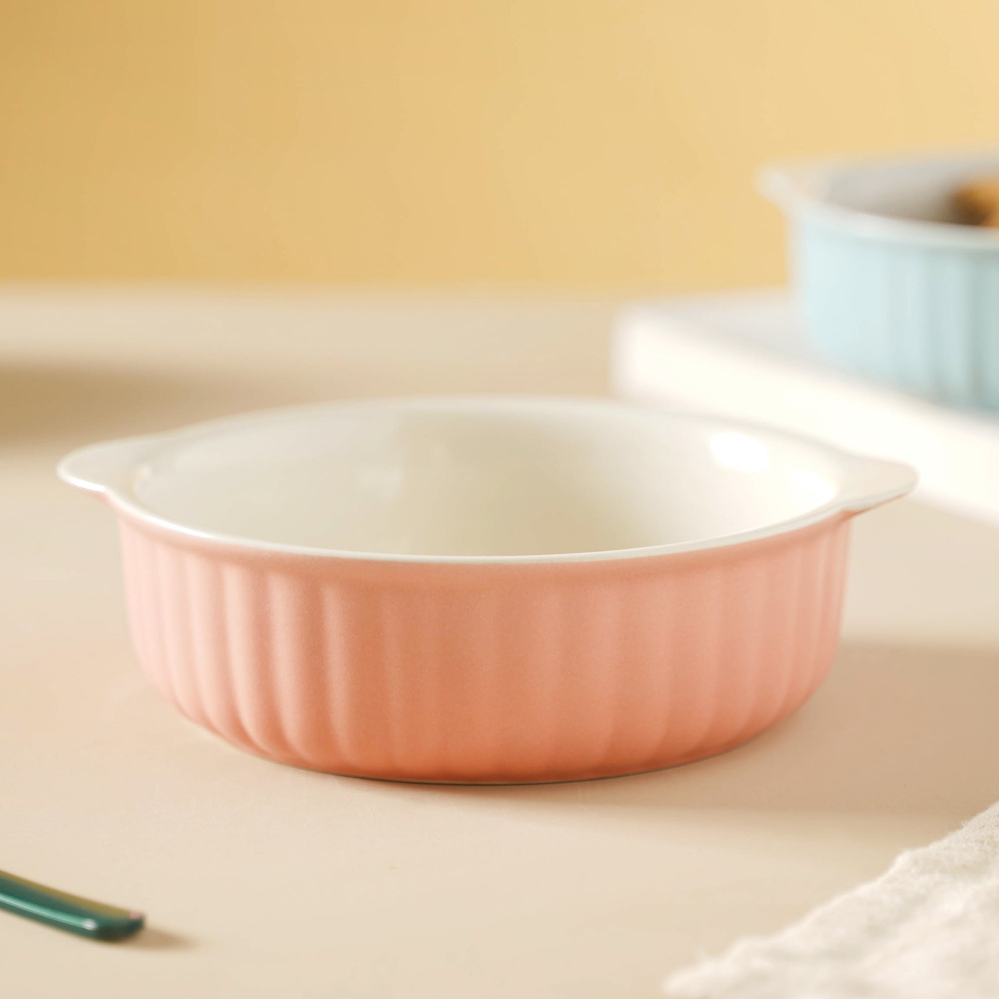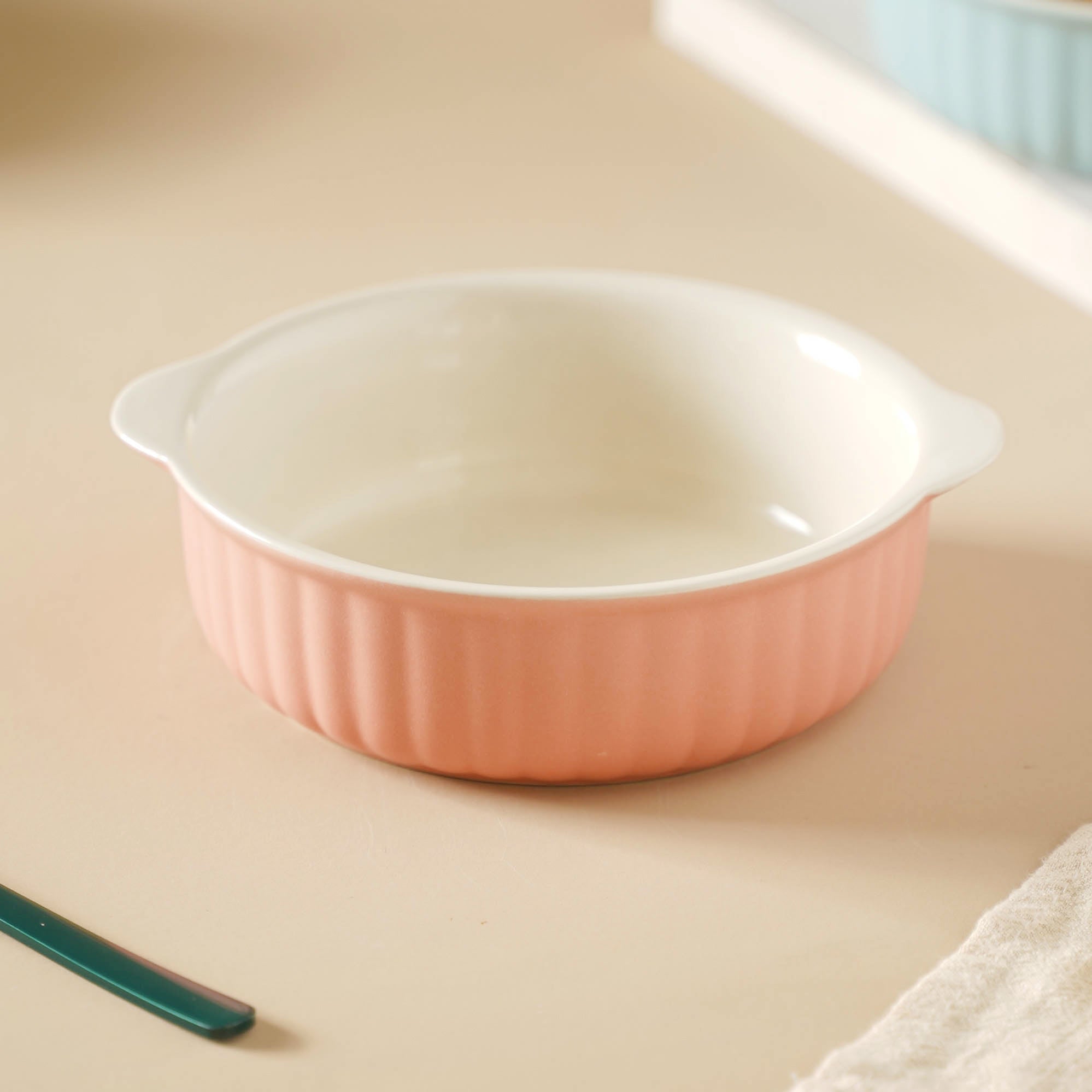 The textured snack bowl in white with a chevron pattern is crafted in ceramic and can be used as a serving bowl to treat guests on any occasion. Use the small round bowl as a fruit bowl, soup bowl, or salad bowl and pair it with a white ceramic dish to complete the look. The bowl looks classy and can be used to heat or reheat food in the microwave.