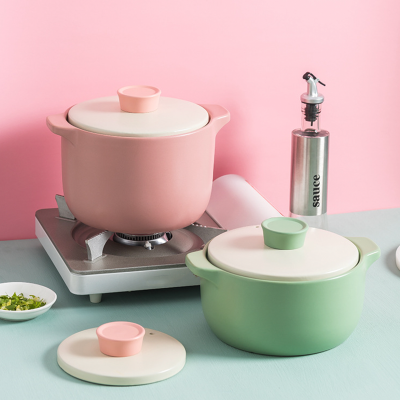 The ceramic pot in a pastel green hue is traditionally made of ceramic clay that is fired (in a kiln) and glazed making the ceramic pot one of the most widely accepted non-toxic and healthiest cookware. The cooking pot heats evenly and therefore cooks food evenly. The specialty of the dish is that after removing from the flame, the ceramic pot stays warm for a time span (greater than that of metal pots), thereby keeping food warm too without overcooking. The pot's surface is naturally non-stick. Soak the cookware for a few minutes before wiping it clean in case any meal stick to it. Leftovers may be stored in the fridge or freezer using the flame and microwave oven-safe cookware, which eliminates the need to wash extra utensils. Nestip: Pair the two color variants of these cooking pots together to add a pop of color to your table. Size: Height with lid- 14cm Height without lid- 11cm Diameter with handle- 26cmCapacity- 2.5 liters Color: Green and white Material: Ceramic Products included: 1 cooking pot Style: YUDU14