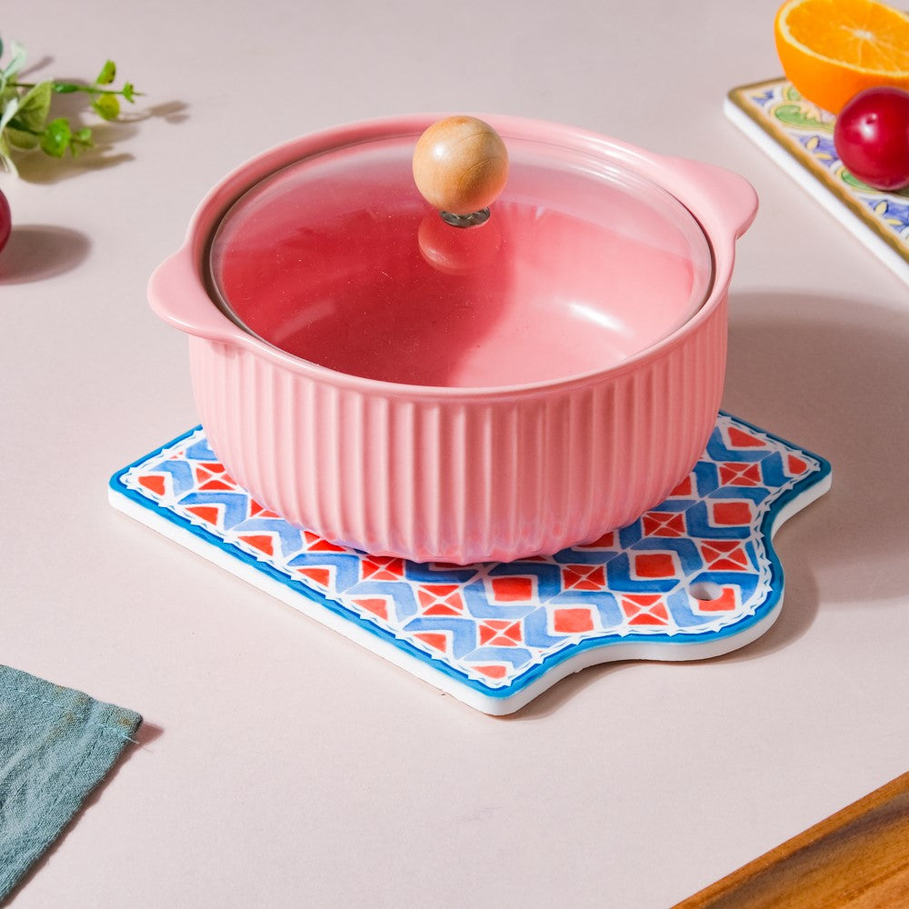 The traditional Moroccan tile pattern and Persian style art are well-known throughout the world. They can be called the “world’s eighth wonder” for their intricacy, vibrant hues, and harmonious blend of mandalas. Our collection of ceramic coaster/trivet is a gateway to incorporate this eighth wonder into your living room, dining table or as a beautiful decor piece. While the trivets are the quintessential companion of your ceramic, earthen, copper, clay, glass pots, hotpots, pans, bowls and plates, other cookware, the coasters can be the new best friends of serveware, wine glasses, cocktail glasses, and glass coffee mugs or cups.