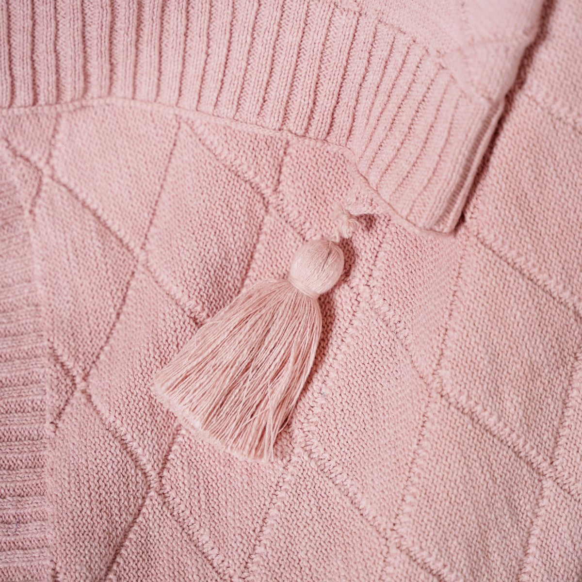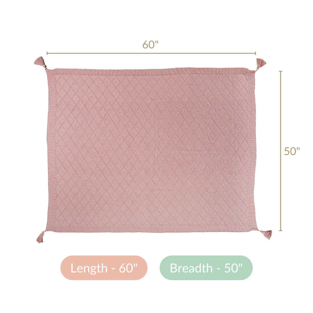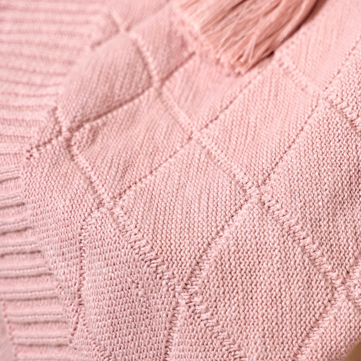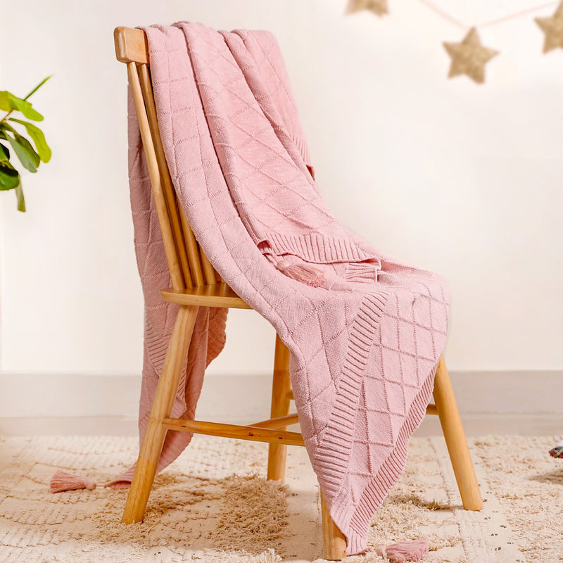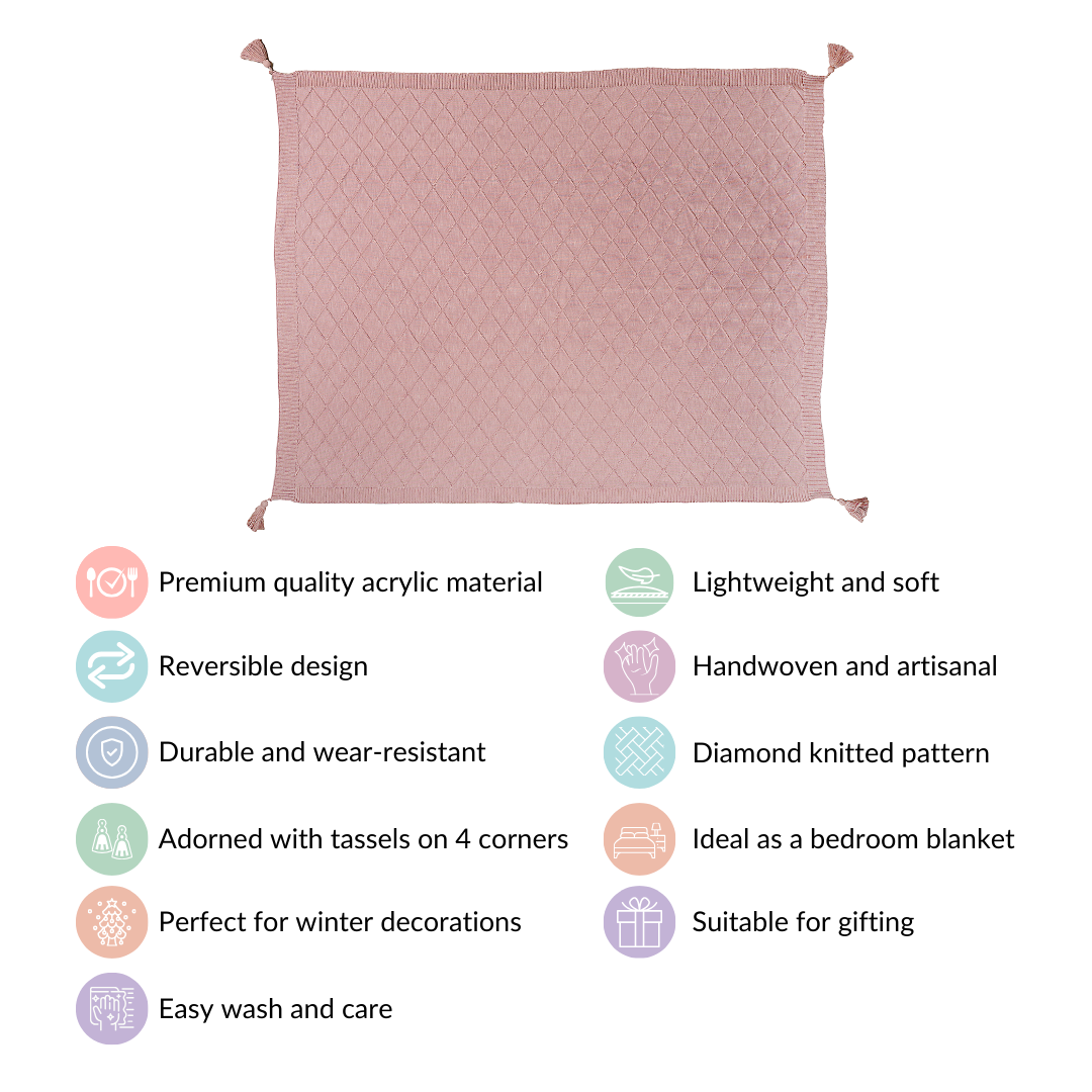 Handwoven with intricate diamond knitted patterns and adorned with charming tassels on all four corners, this artisanal touch elevates the throw's appeal. The blanket is a testament to skilled craftsmanship, ensuring a blend of beauty and quality.