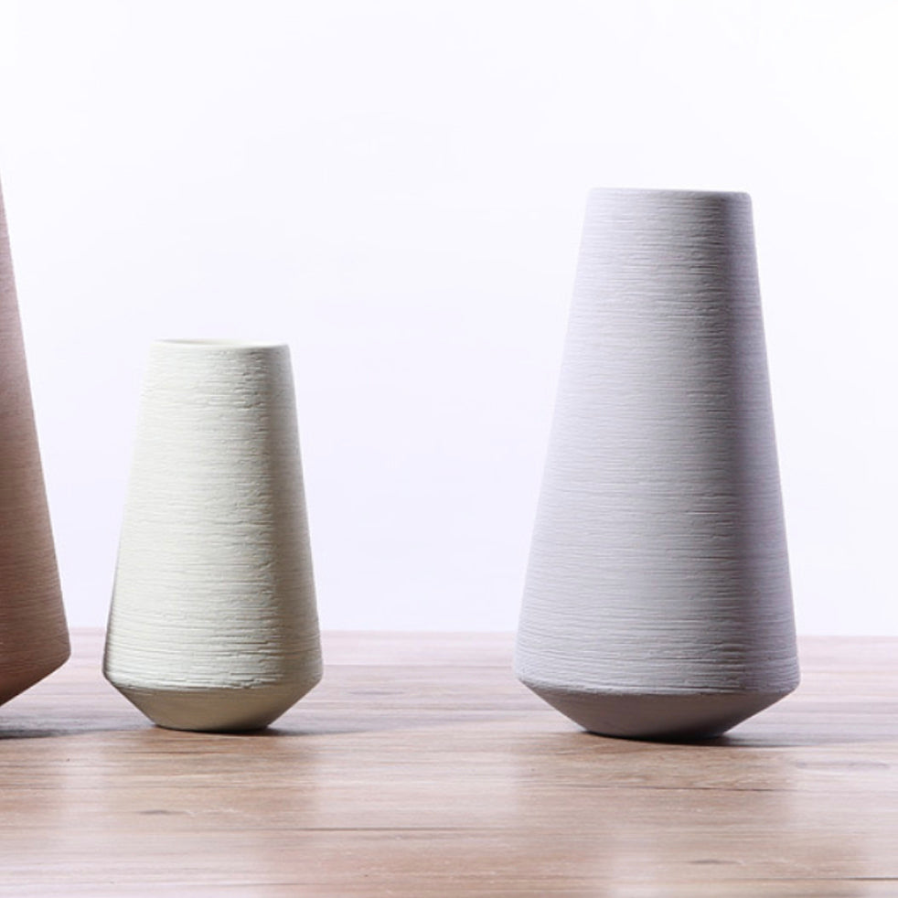 Pastel vases in ceramic that come in shades of pink and grey. The vases have a wide base that becomes sleek towards the mouth that can be filled with colourful orchids, hydrangeas or even carnations. The flower pots can add an element of interest to a decor setup at home or at office. The vases can be placed on counter tops, bath settings or in the bed room.