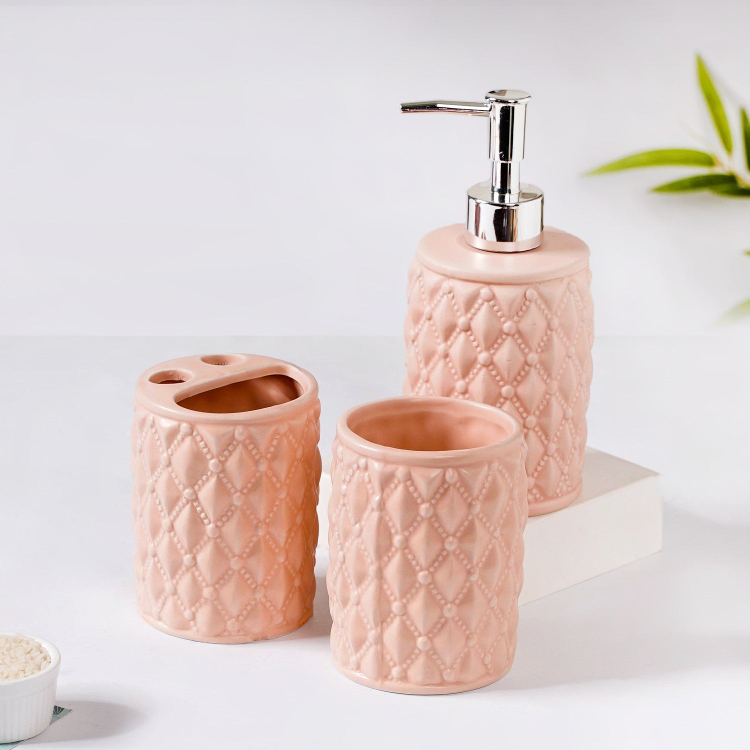 Peach Knit Design Ceramic Bathroom Accessories Set Of 3 |