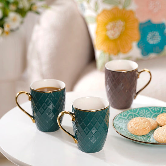 These ceramic cups are not microwave or dishwasher-safe due to their delicate golden decorations. To clean them, gently hand wash each cup using a soft sponge or cloth. Use a mild dishwashing soap and warm water. After washing, dry the cups with a soft, clean cloth to prevent water spots or streaks. Ensure they are completely dry before storing or using them again. While these cups are durable, it's best to handle them with care to prevent accidental bumps or falls that could damage the delicate golden decorations. Hold them by the handle when lifting and avoid unnecessary rough handling.