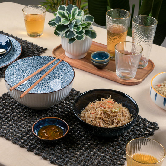 Our premium selection of drinking glasses and water tumblers comes in gorgeous, expertly handcrafted designs, making these drinkware pieces a stunning showstopper at any dinner party or family gathering. The lightweight design of the glassware makes it pretty convenient for daily use. You can use the tumblers to arrange small flowers on the coffee table or on your work desk. The textured glass tumblers can also double as a pen stand for your study desk.