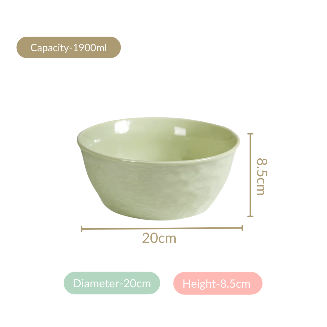 Get ready to add a splash of minty freshness to your dining experience with our fabulous set of two mint-colored serving bowls! Say hello to convenience and charm as you dive into the world of stylish entertaining. Crafted from non-porous ceramic, these serving bowls are the ultimate dinnerware vessels to include in your collection. And here's why! They're microwave, oven, and dishwasher safe, therefore you know it's going to be super easy to reheat and clean up. Furthermore, they're chip, stain, and odour-resistant, ensuring they stay as good as new after every use. Additionally, they adhere to international food safety standards, which is always a plus. But the best part is their captivating beauty. With an alluring mint green hue and intriguingly unique textured design, these plates instantly elevate your table decor.